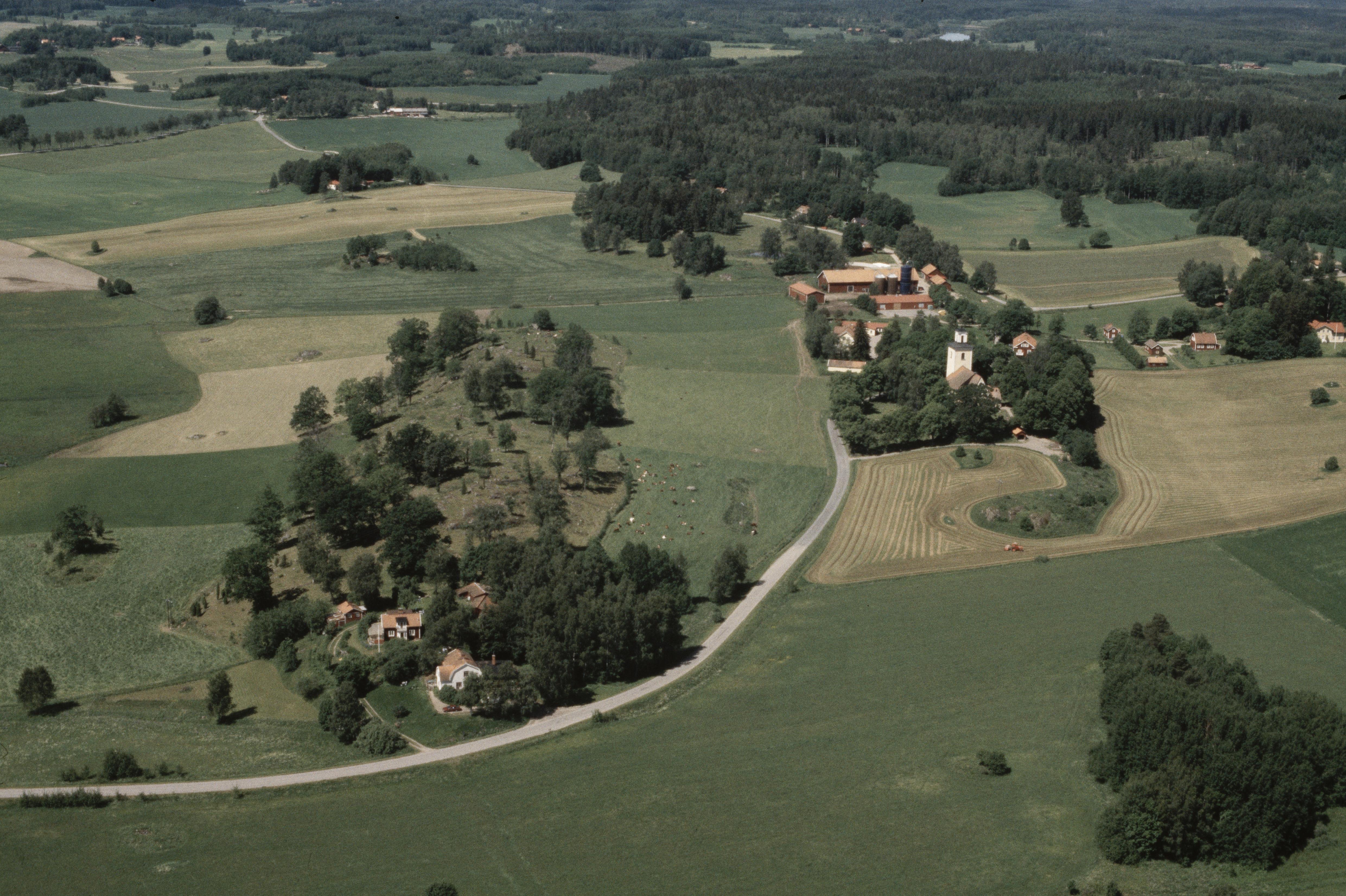 Beskrivning: Dunkers kyrka och kyrkby. Bilden är tagen mot (väderstreck): V