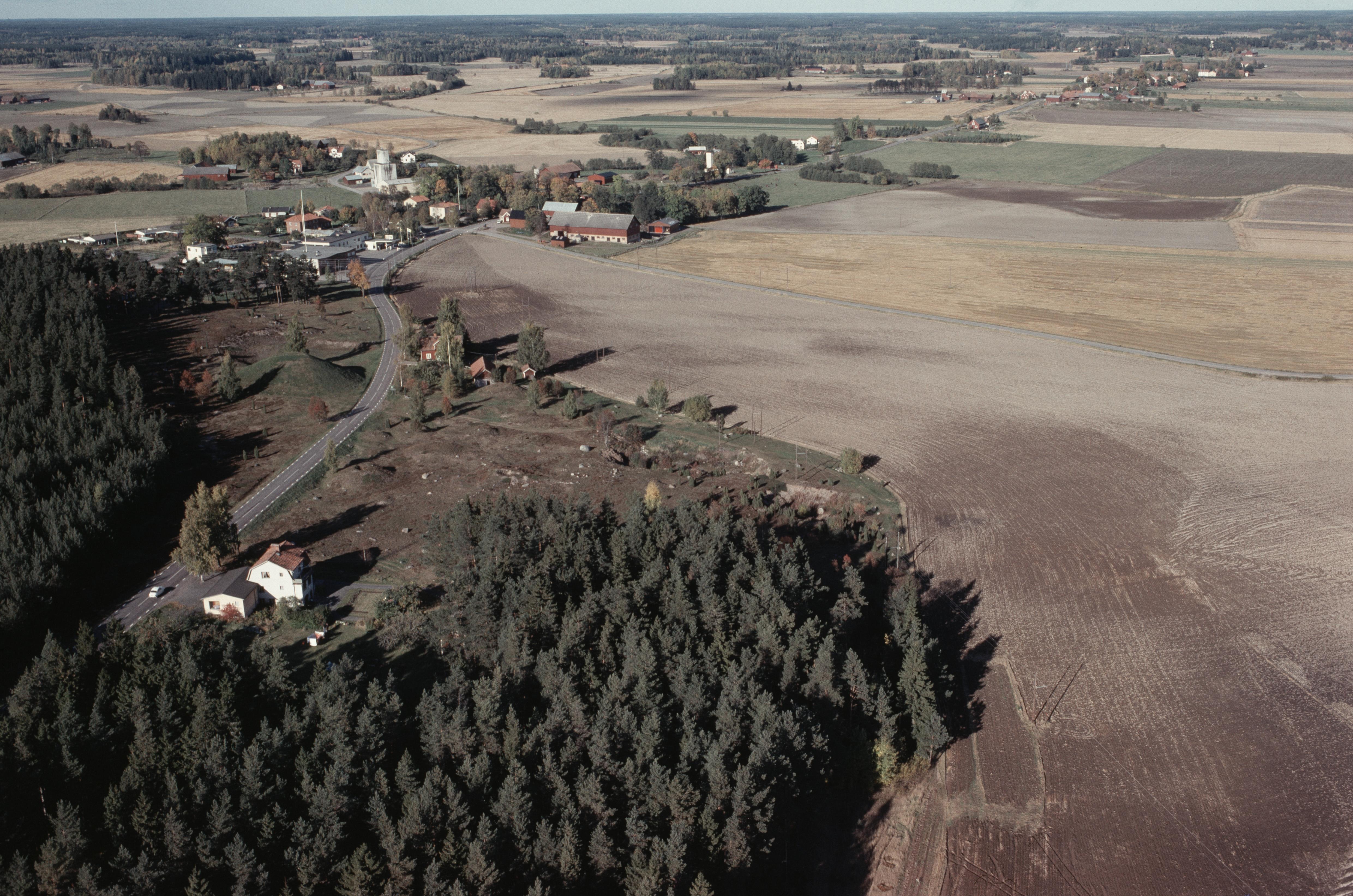 Beskrivning: Husby vid Tassbäcken. Till vänster om bildens mitt Ottarshögen RAÄnr Vendel 1:1 vid gravfälten RAÄnr Vendel 2:1 och 3:1. Uppe till höger Karby. Bilden är tagen mot (väderstreck): NNV