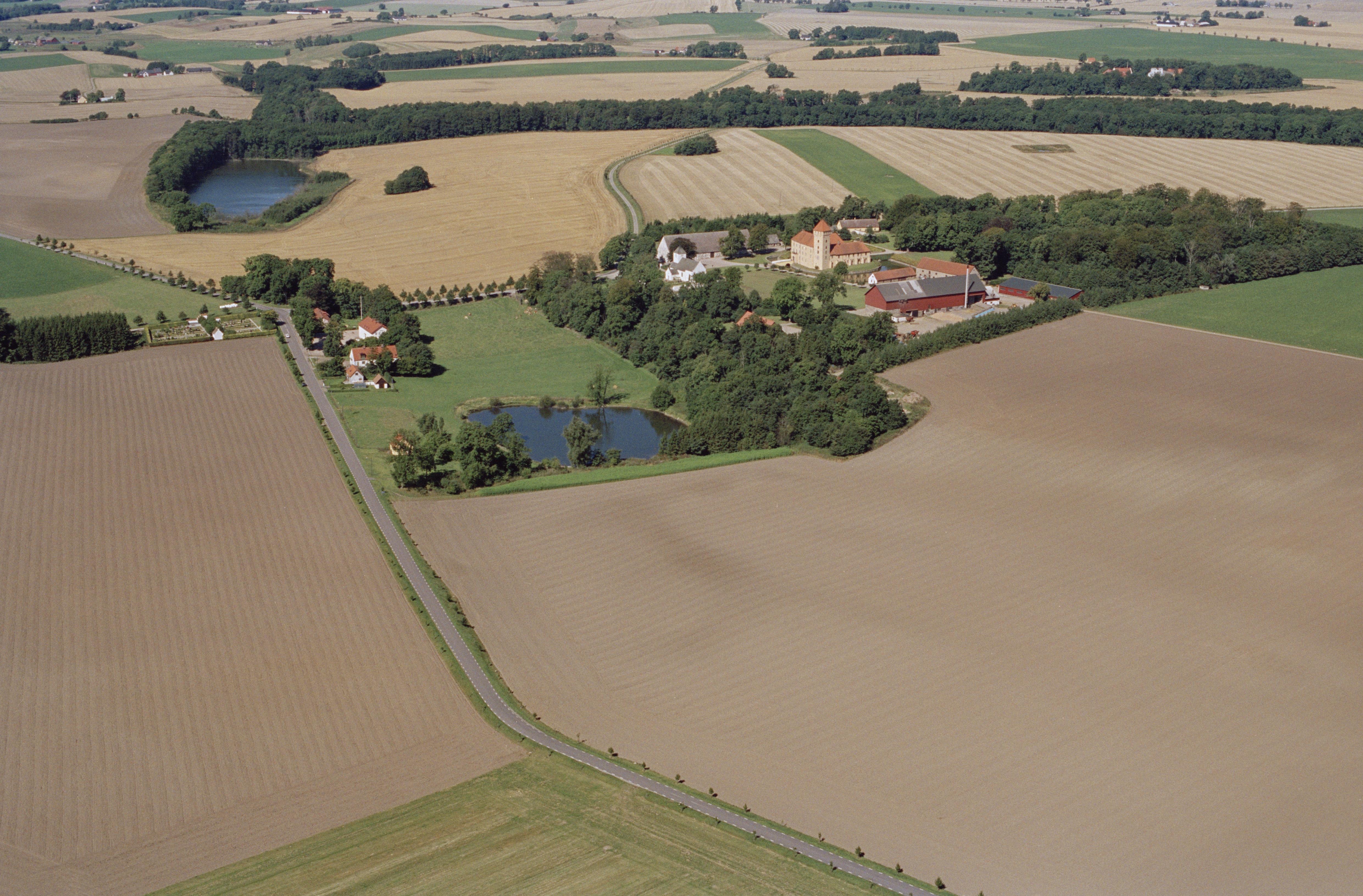 Beskrivning: Tosterups kyrka och Tosterups slott. Bilden är tagen mot (väderstreck): NNV