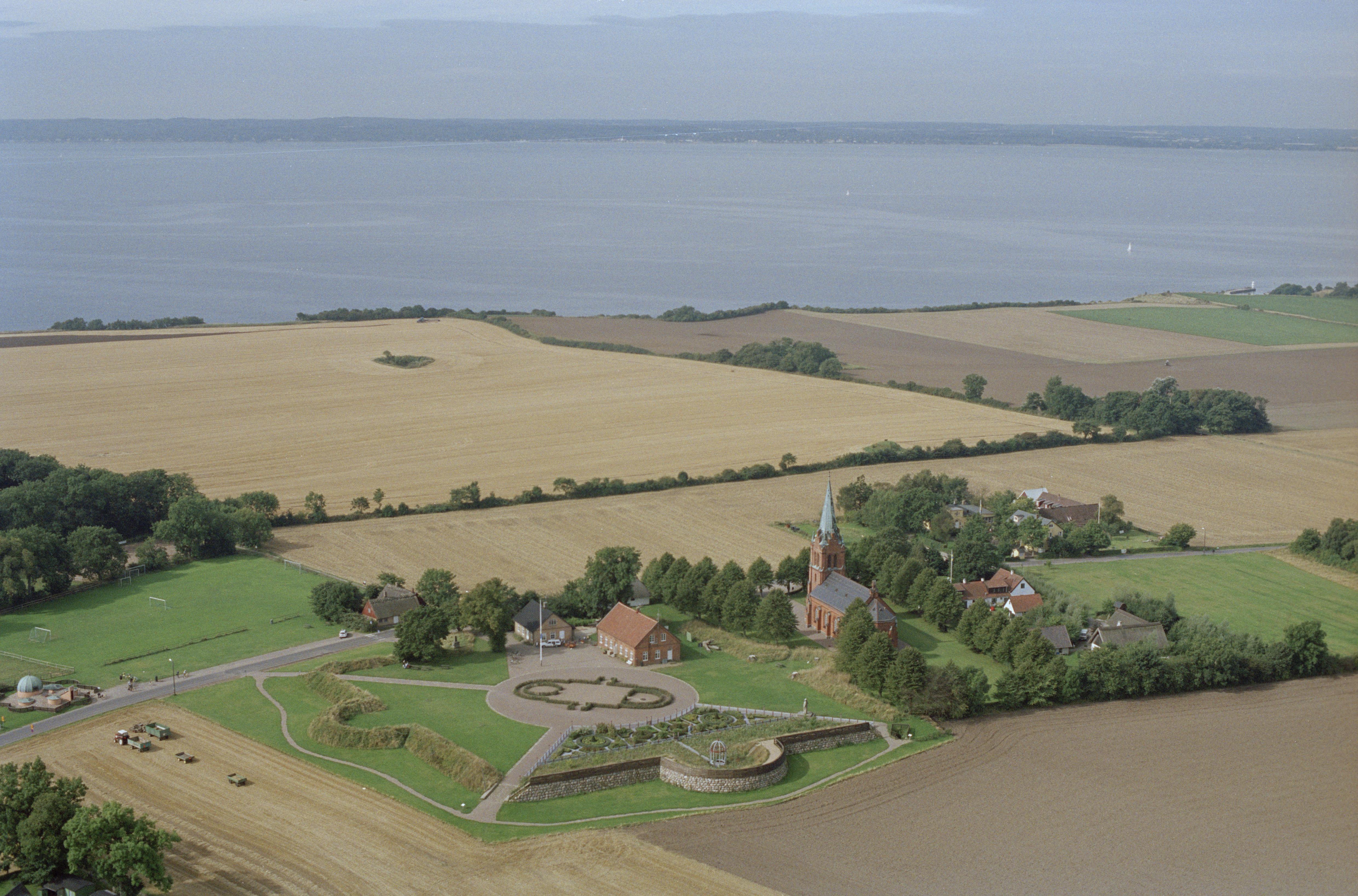 Beskrivning: Sankt Ibbs nya kyrka. Ruiner efter Tycho Brahes slott Uranienborg och observatorium Stjärneborg RAÄnr Sankt Ibb 29:1. Bilden är tagen mot (väderstreck): V