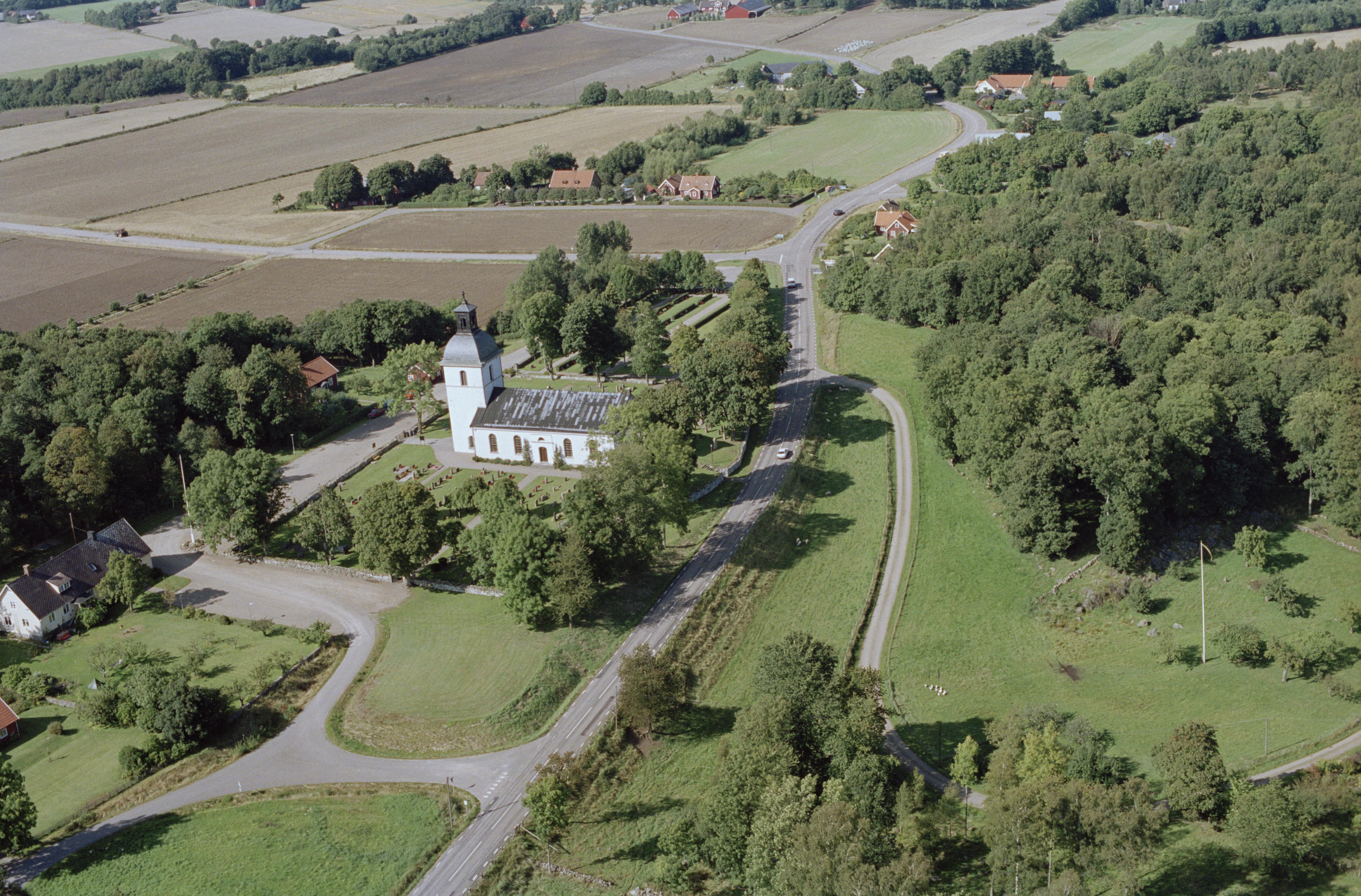 Beskrivning: Eftra kyrka och kyrkby. Bilden är tagen mot (väderstreck): NNO