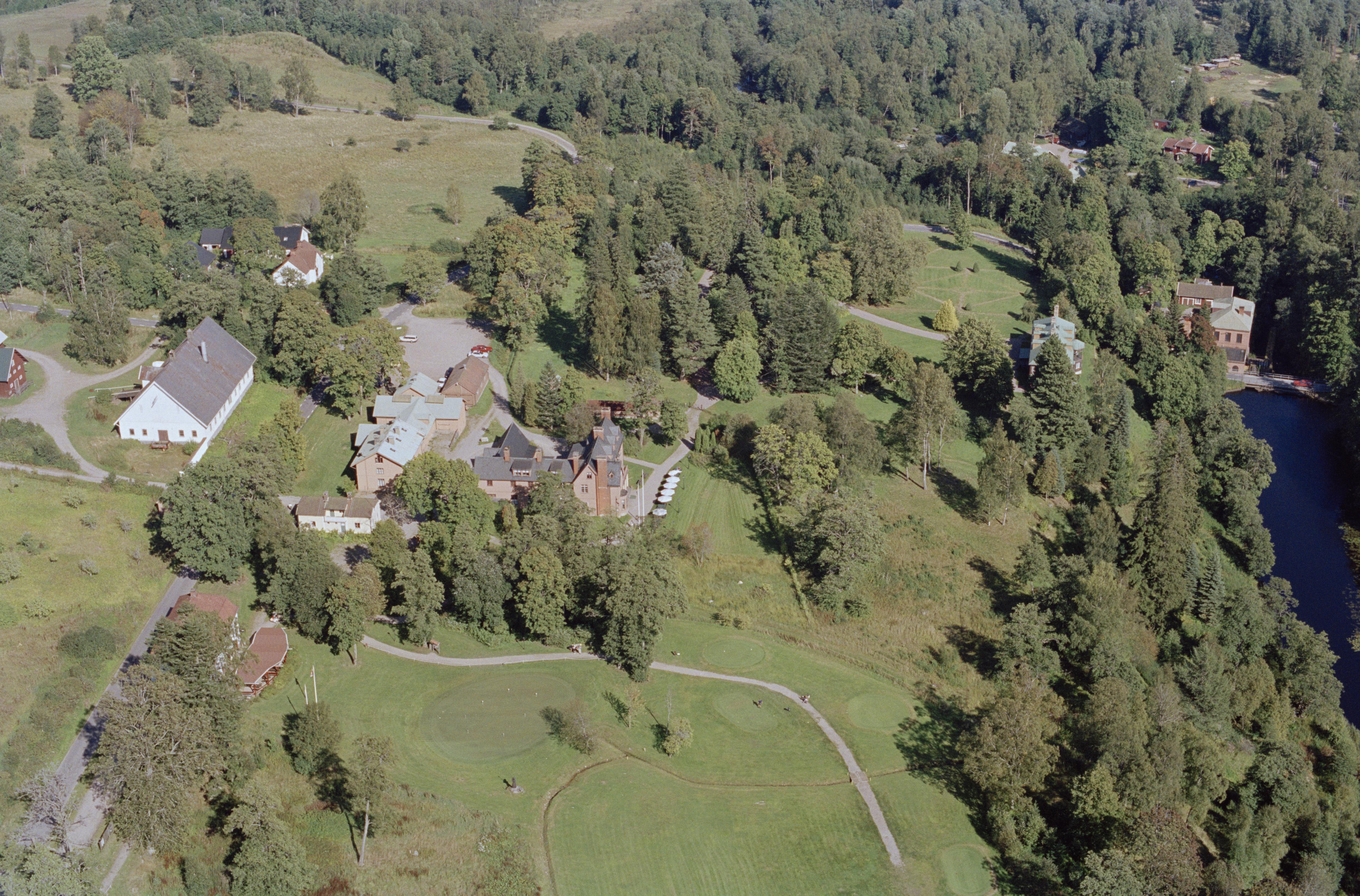 Beskrivning: Ryfors bruk vid ån Tidan. Ryfors herrgård, Ryfors golfbana. Bilden är tagen mot (väderstreck): NNO