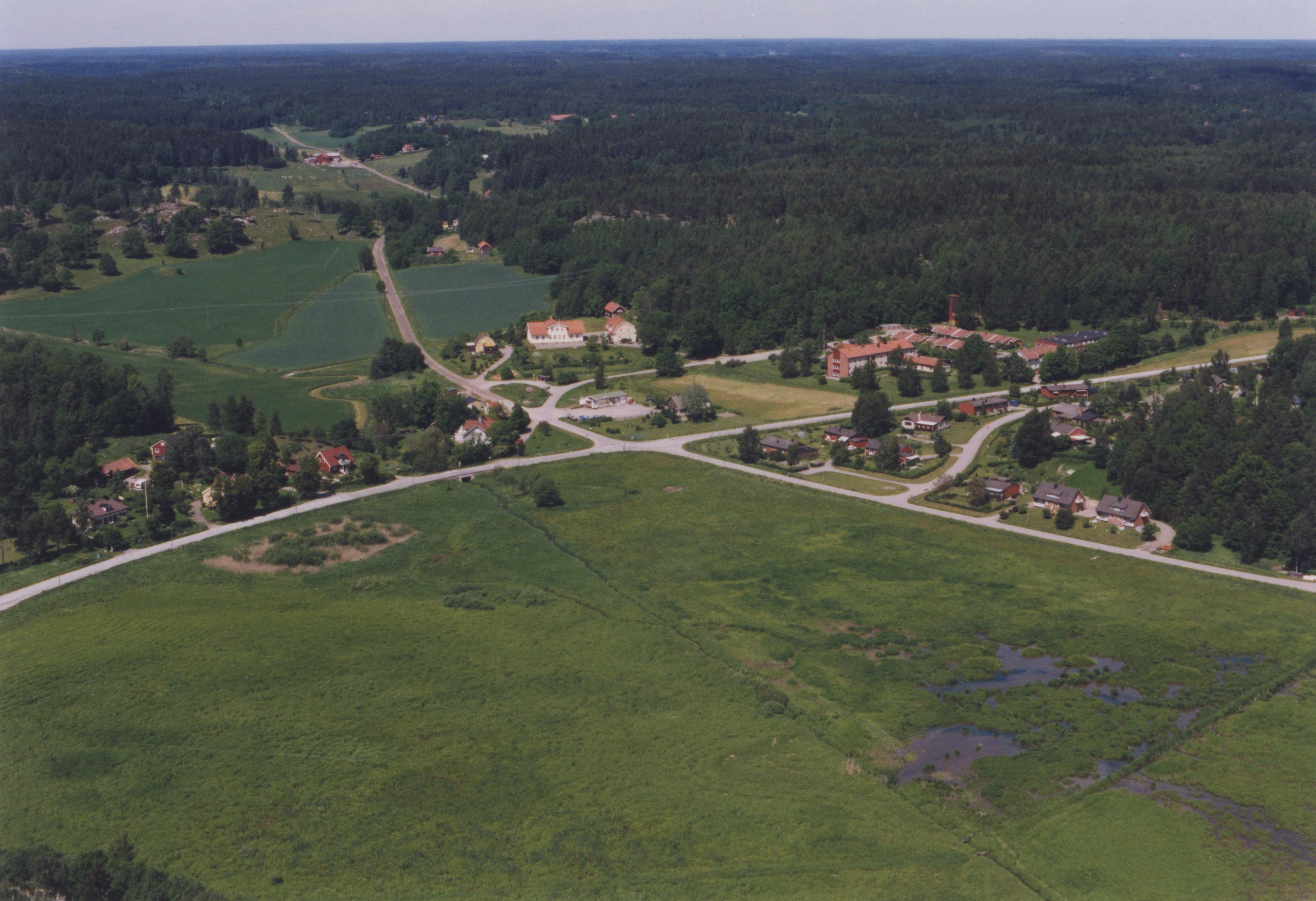 Beskrivning: Aspa gästgivaregård till vänster om bildens mitt. Nere till vänster Tingshögen RAÄnr Ludgo 62:1. I bildens övre del gränsen mellan två riksintressen, "D47 - Lid - Runtuna - Spelvik - Ludgo ? Lästringe - Bogsta" och "D43 - ?Eriksgatan? - Önnersta - Penningby". Bilden är tagen mot (väderstreck): NNV