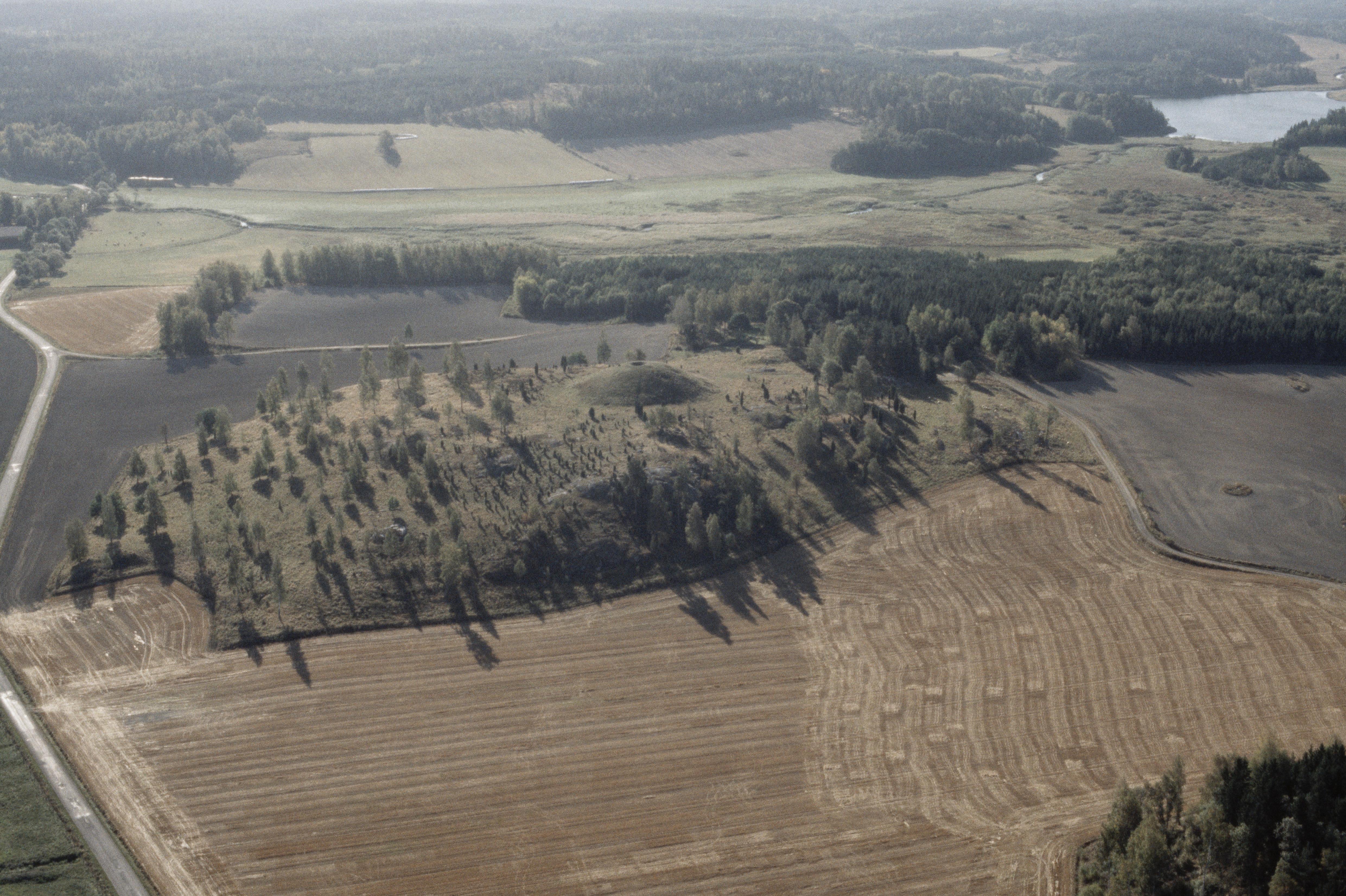 Beskrivning: Gravfält Uppsa kulle RAÄnr Runtuna 144:1 och bytomt Runtuna 414:1 m.fl. vid sjön Runnviken. Bilden är tagen mot (väderstreck): S