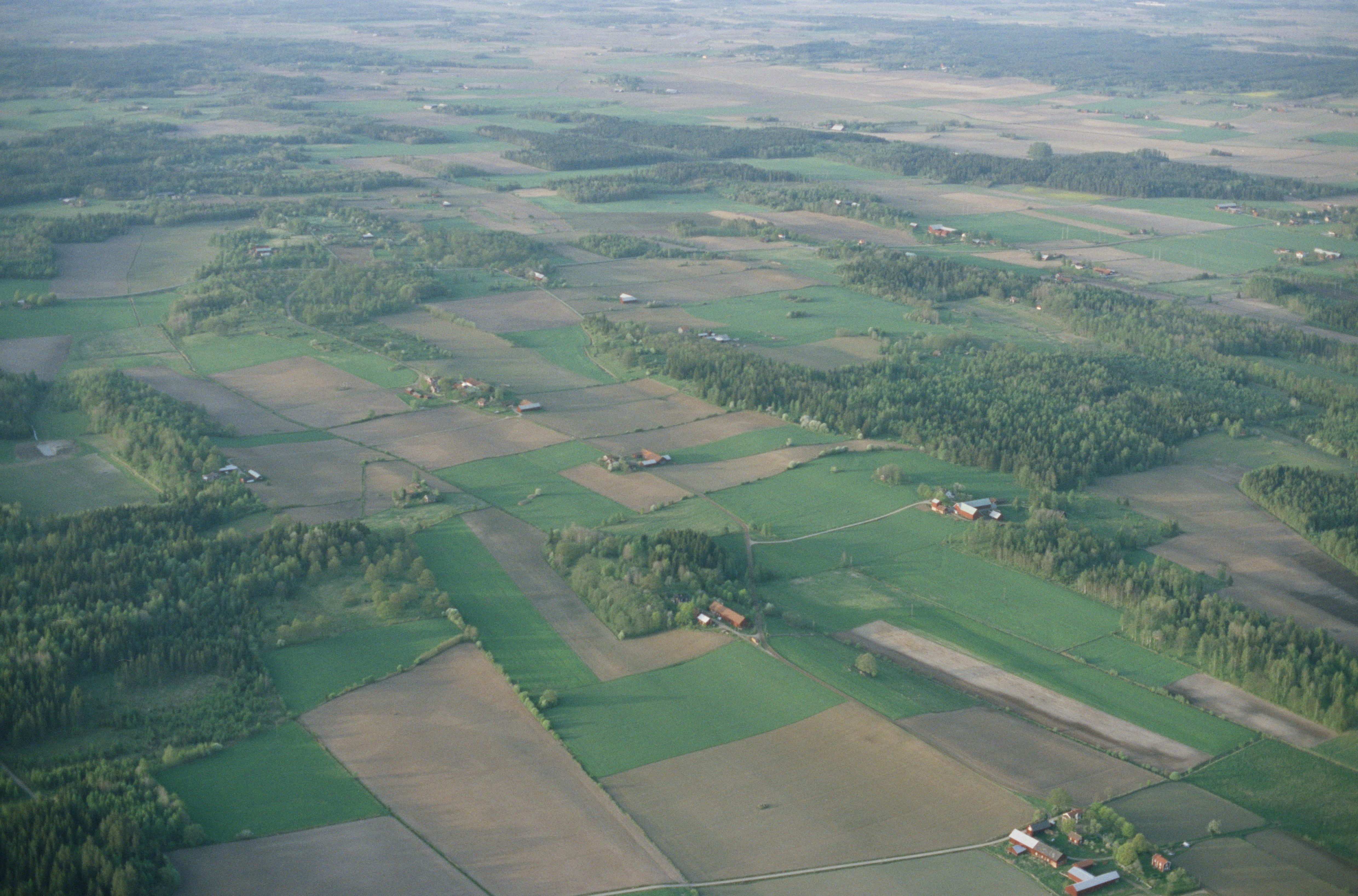 Beskrivning: Drumlinområdet vid gränsen mot socknet Edsberg (i bildens övre del). Till vänster om bildens mitt fossil åker RAÄnr Hackvad 45:1-2 m.fl. Bilden är tagen mot (väderstreck): NNO