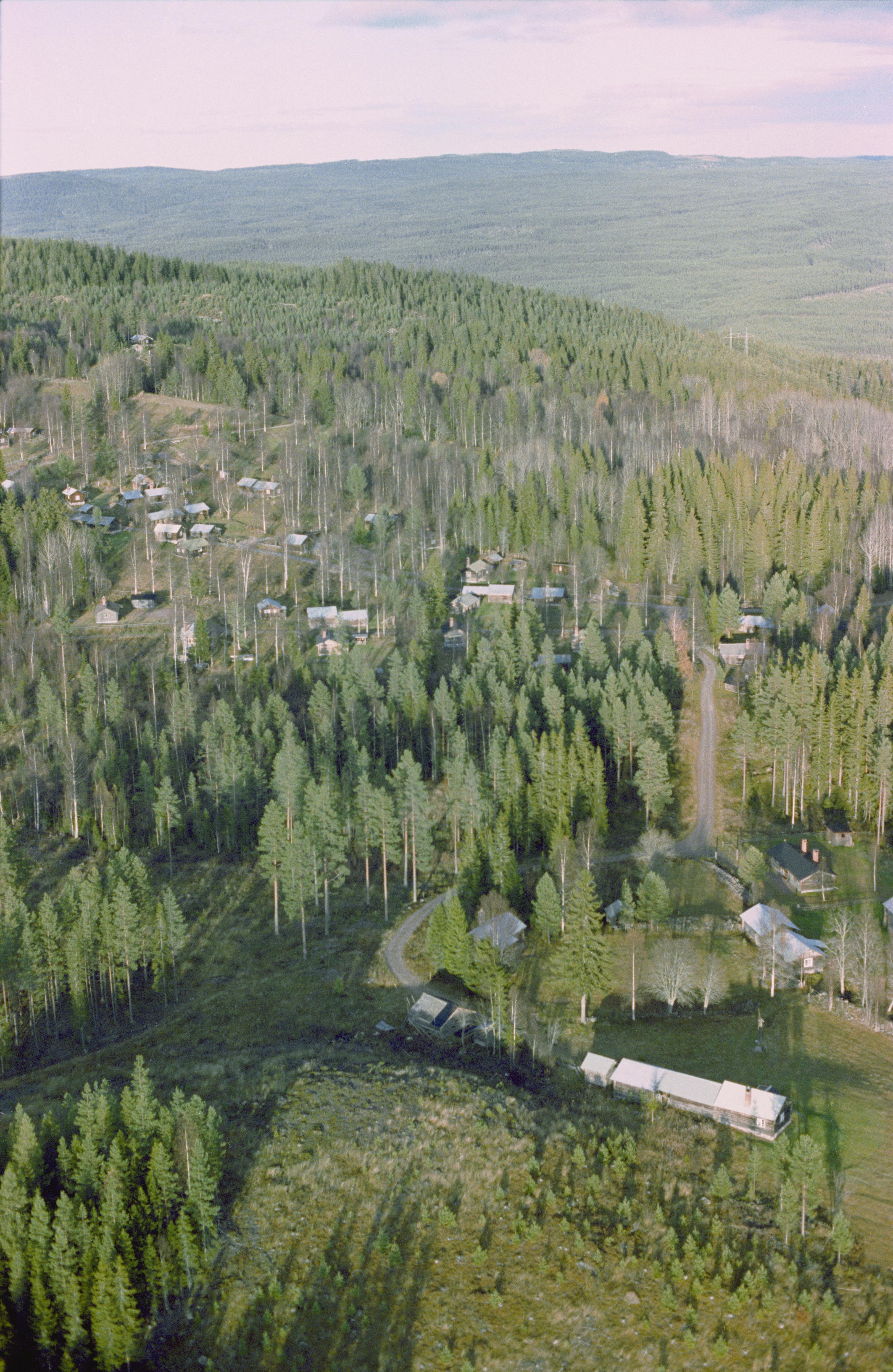 Beskrivning: Fäbodsbyn Övre Bjönsaberg (skrivs även Bönsaberg). Nere till höger fäbodar med nummer 714, 713, 707, 709 m.fl. i södra delen av byn. Bilden är tagen mot (väderstreck): NO