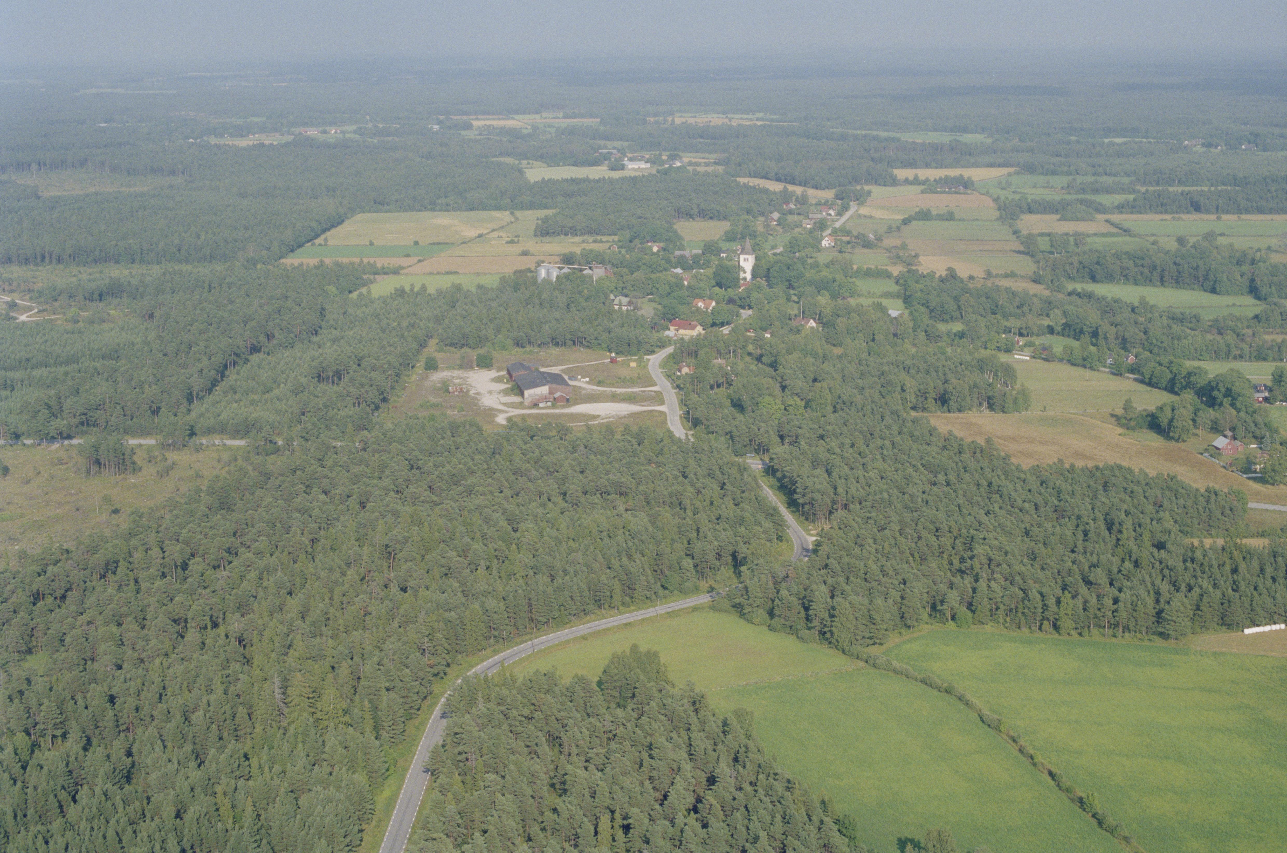 Beskrivning: Buttle kyrkby. Till vänster om bildens mitt husgrund Burgs slott RAÄnr Buttle 73:1. Vid bildens mitt bytomt RAÄnr Buttle 252. Buttle kyrka till höger över bildens mitt. Bilden är tagen mot (väderstreck): Ö