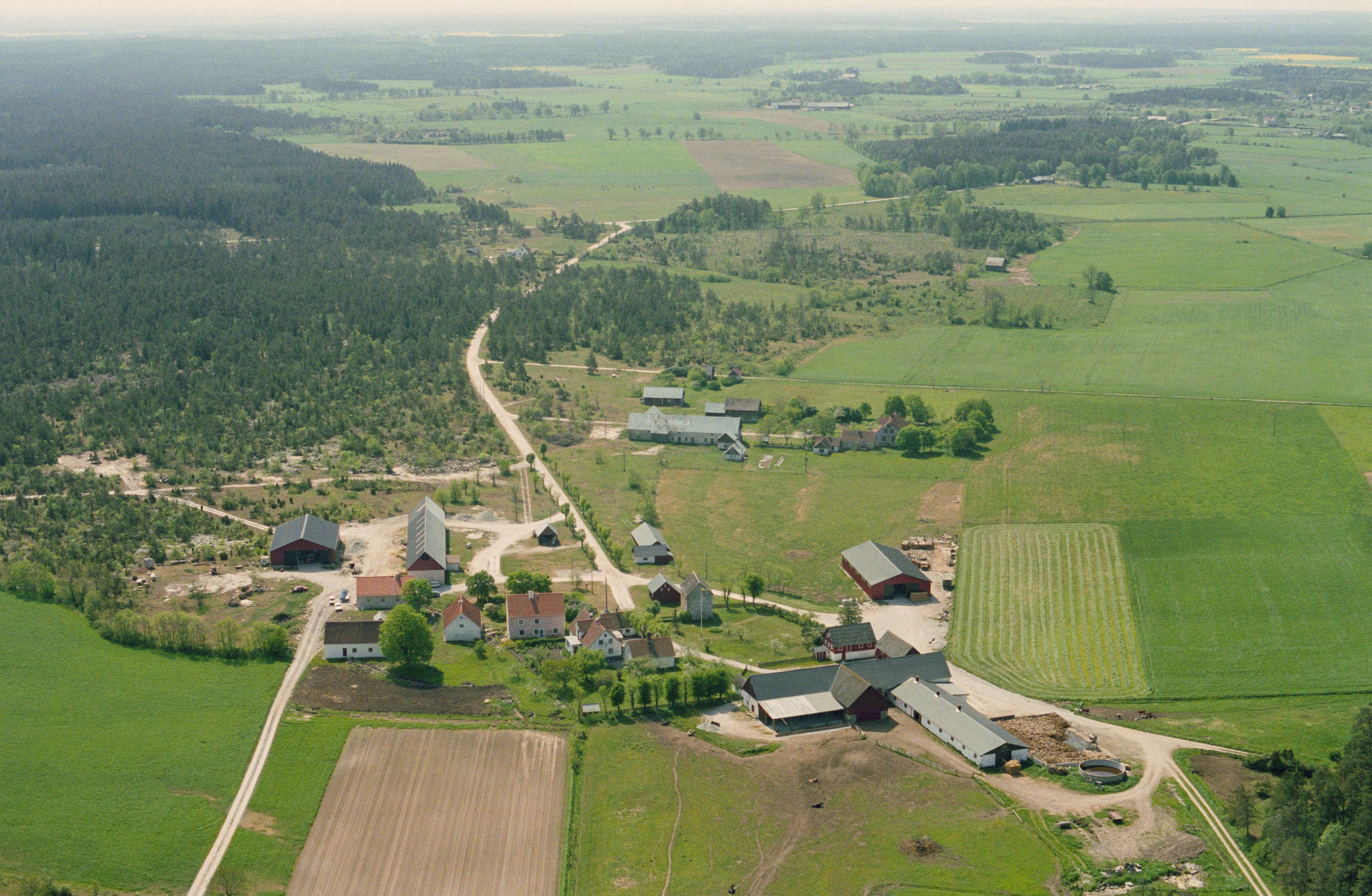 Beskrivning: Beskrivning: Byggnadsminnet Lauks gård. Vid gården husgrund RAÄnr Lokrume 56:2. I skogen uppe till vänster en tjärdal RAÄnr Lokrume 76:1. Bilden är tagen mot (väderstreck): SSV Fotosyfte: Flygbildsdokumentation