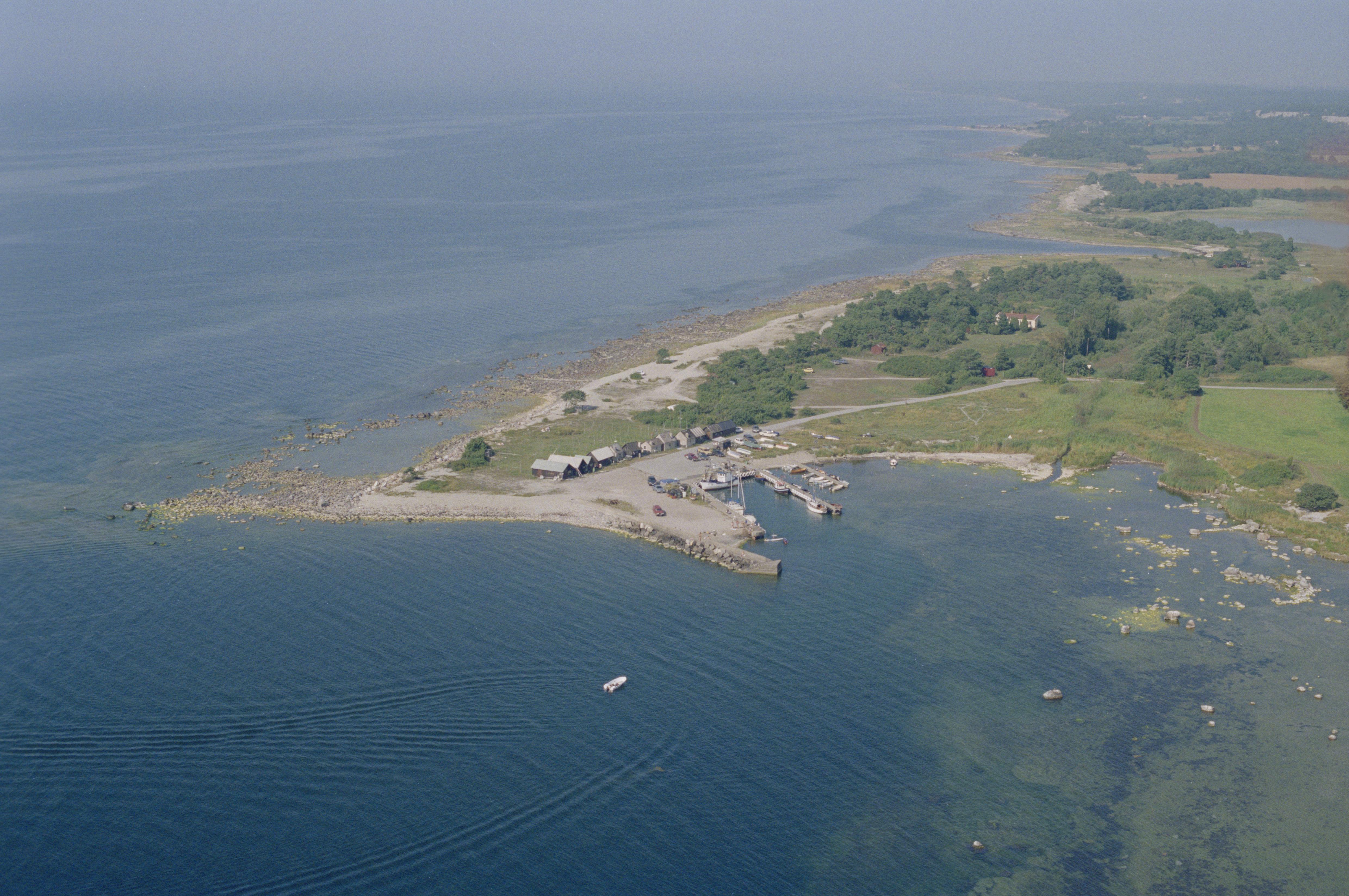 Beskrivning: Fiskeläget Strandviken. På udden i bildens mitt gravplats RAÄnr Väskinde 177:1. Bilden är tagen mot (väderstreck): N