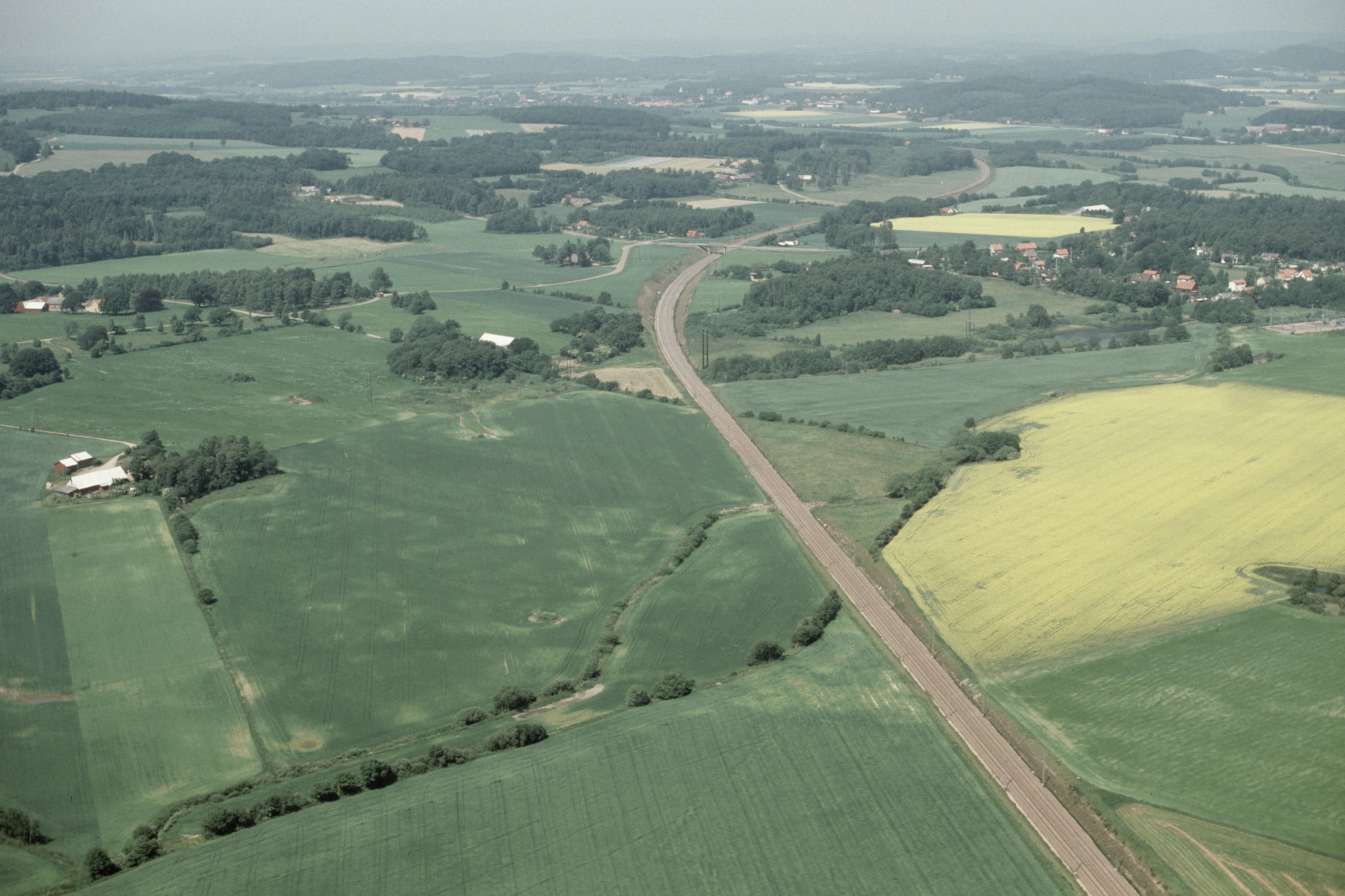 Beskrivning: Vid gränsen mellan socknen Getinge och Rävinge. Områdena Hörsås - Lilla Berg - Öringe, innan bygge av väg E6 mellan Laholm och Slöinge. Högar och fossila åkrar, RAÄnr Getinge 26:1 m.fl. Bilden är tagen mot (väderstreck): NV