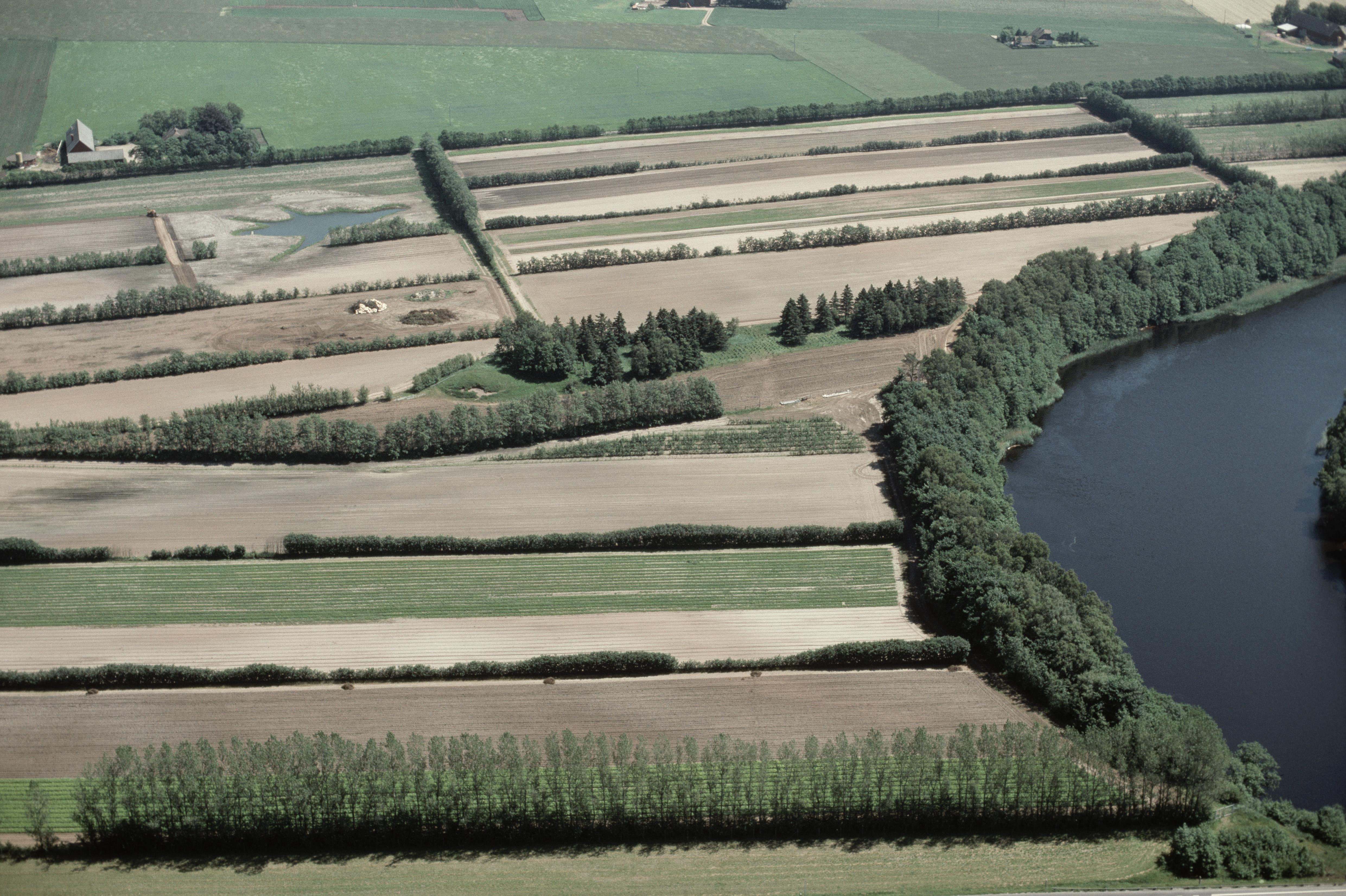 Beskrivning: I bildens mitt högarna RAÄnr Laholm 4:1-2 vid ån Lagan i norra delen av Restads by. Bilden är tagen mot (väderstreck): Ö
