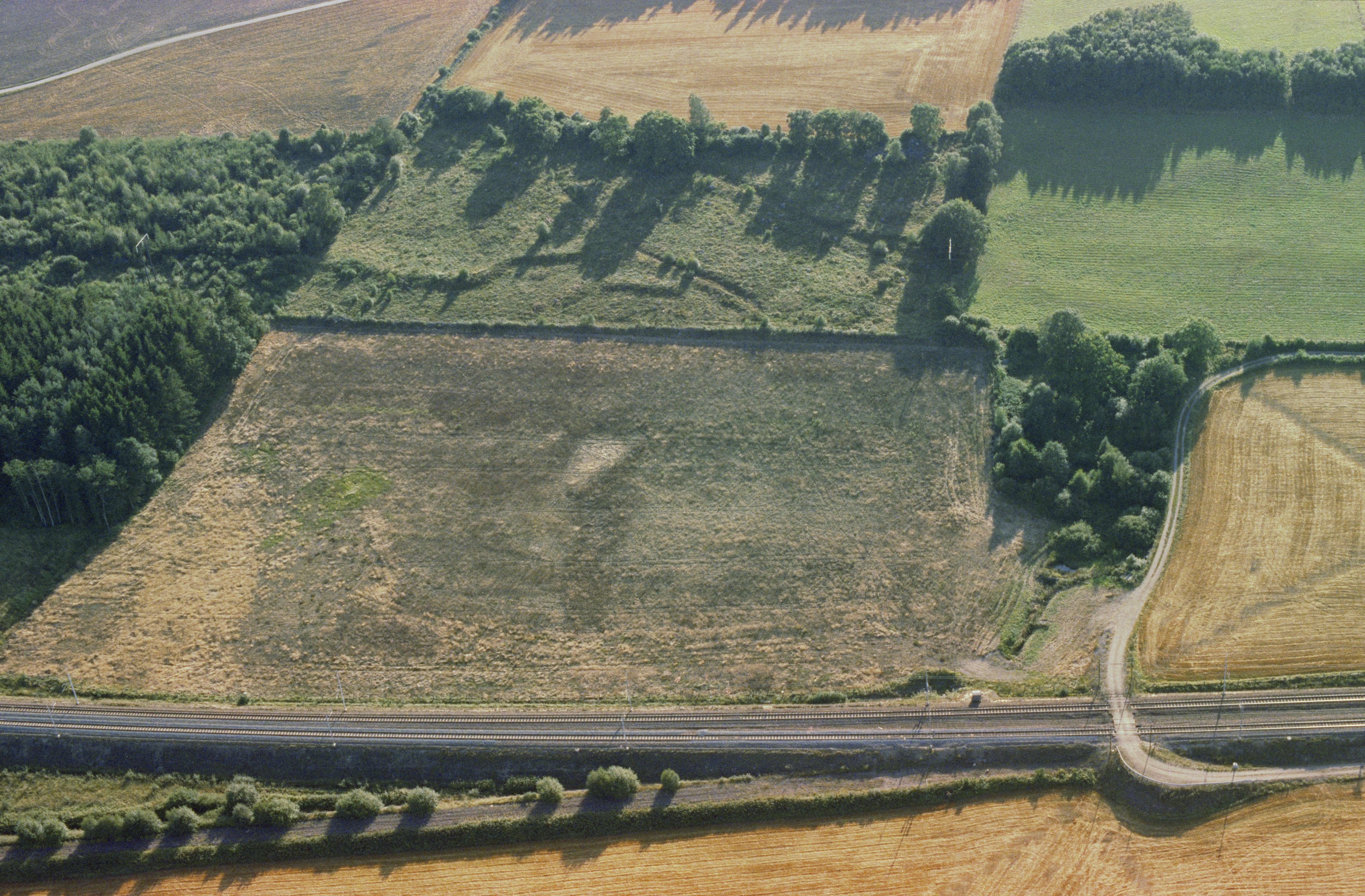 Beskrivning: Beskrivning: Fossil åker RAÄnr Slöinge 118:1 i Suseåns dalgång söder om tätorten och kyrkbyn Stenstorp. Bilden är tagen mot (väderstreck): SV Fotosyfte: Flygbildsdokumentation