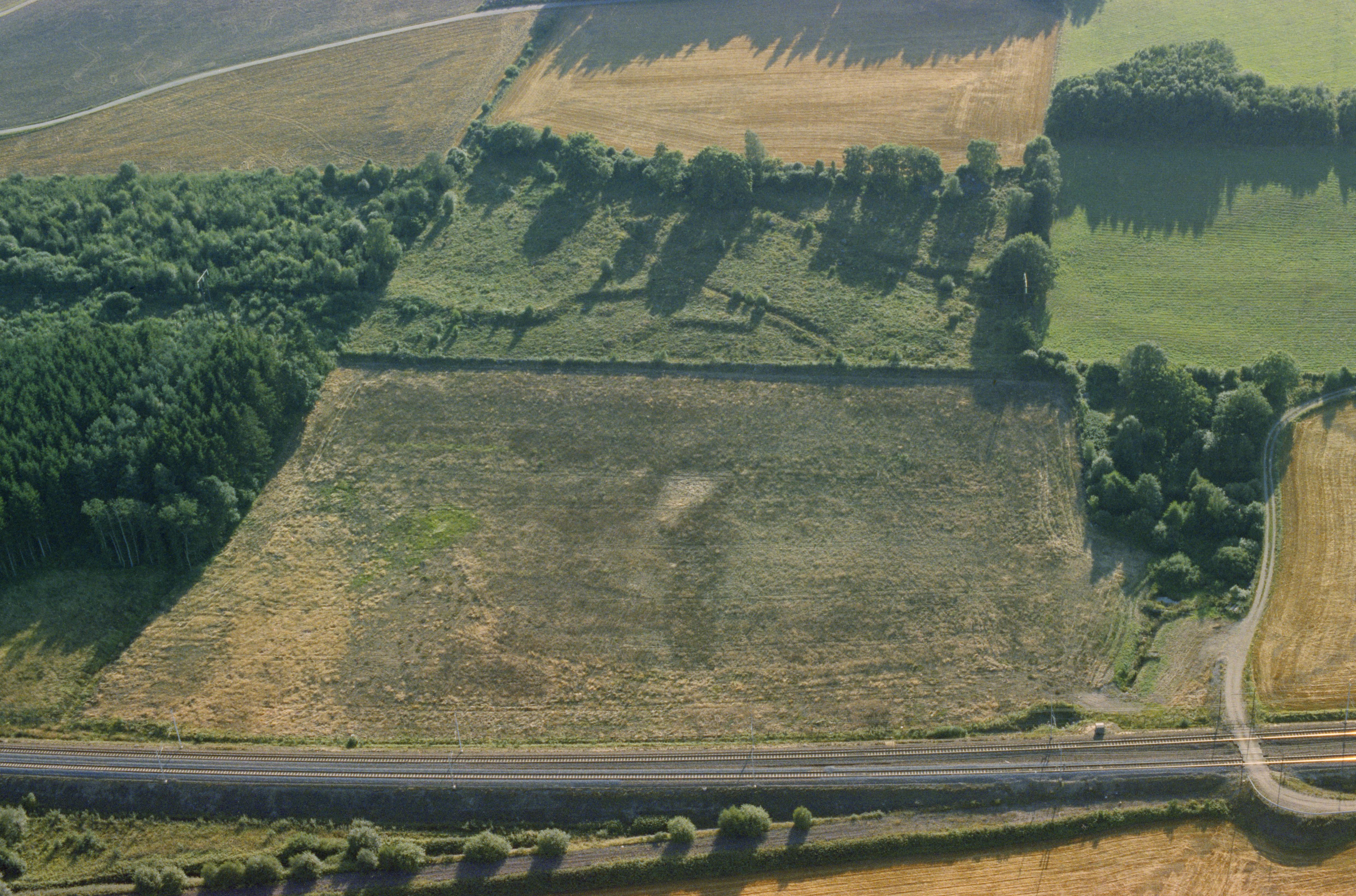 Beskrivning: Beskrivning: Fossil åker RAÄnr Slöinge 118:1 i Suseåns dalgång söder om tätorten och kyrkbyn Stenstorp. Bilden är tagen mot (väderstreck): SV Fotosyfte: Flygbildsdokumentation