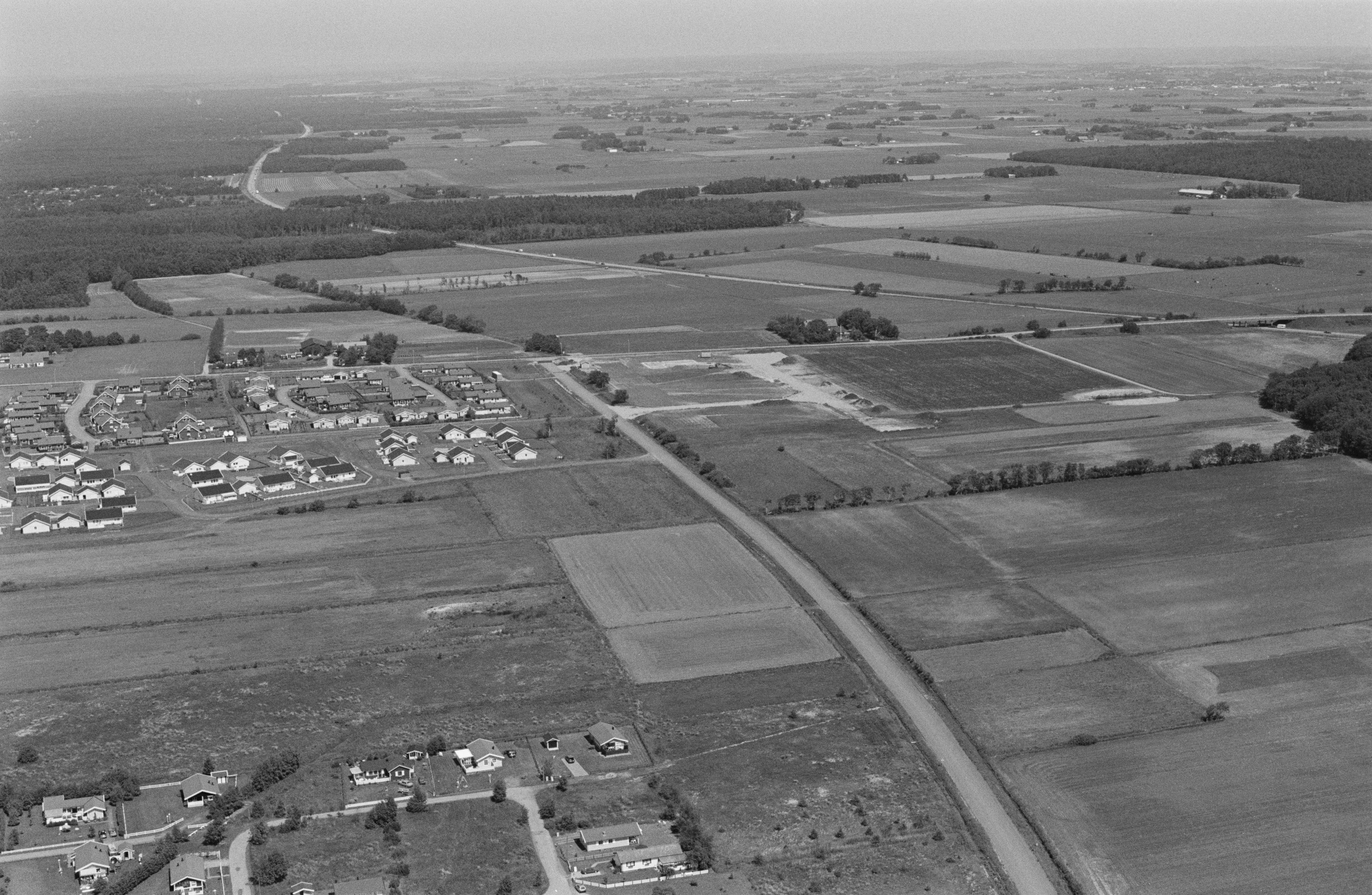 Beskrivning: Väg E6 vid Allarp: planerad ny sträckning Skottorp - Trönninge. Fyndplats RAÄnr Skummeslöv 31:1 vid bildens mitt. Stjärnhem och Sommarbo i bildens övre del. Bilden är tagen mot (väderstreck): NNO