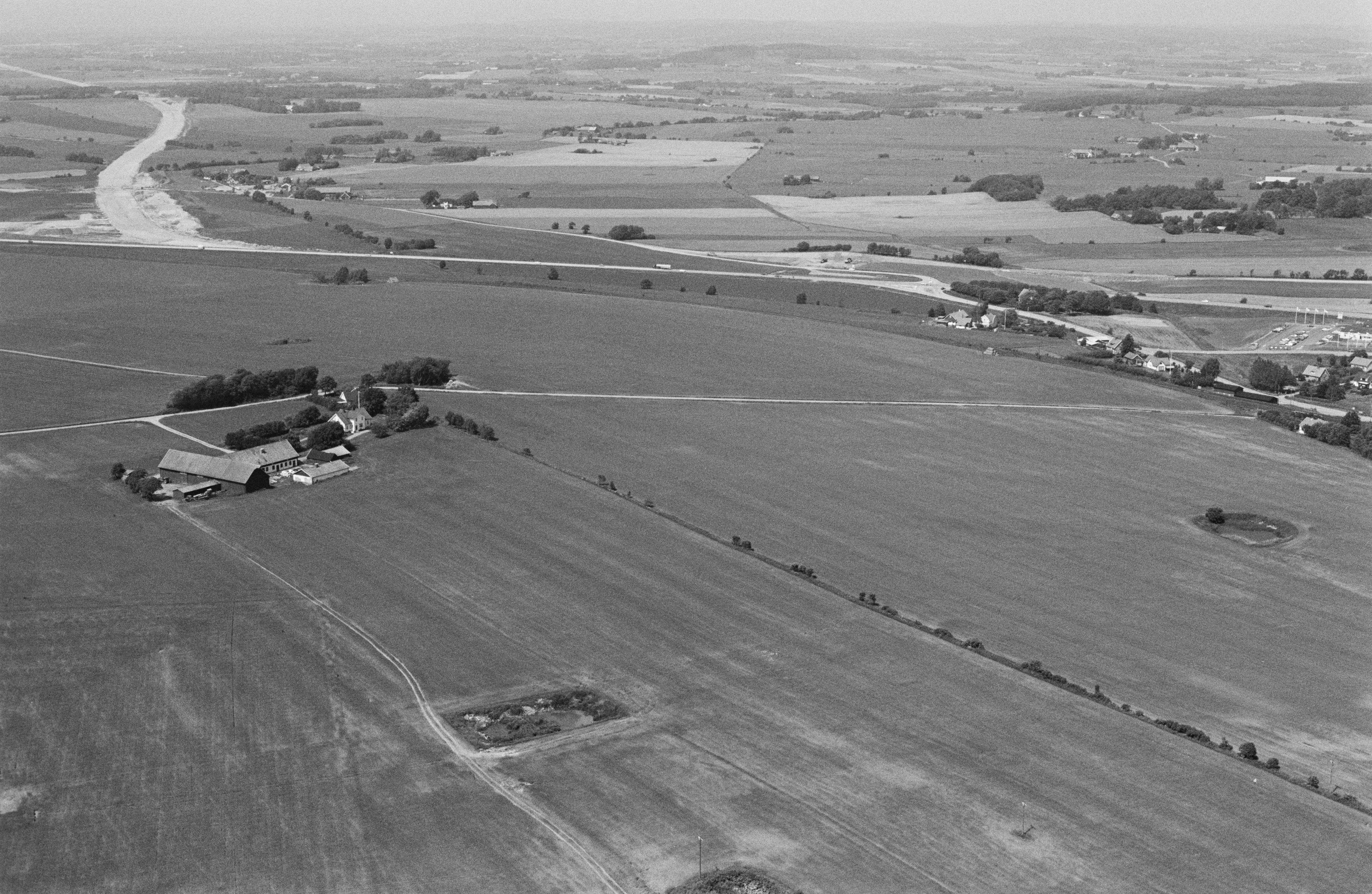 Beskrivning: Väg E6 byggs vid området Broen, sydväst om Heberg, vid gränsen mellan socknen Skrea och Årstad. Bilden är tagen mot (väderstreck): NV