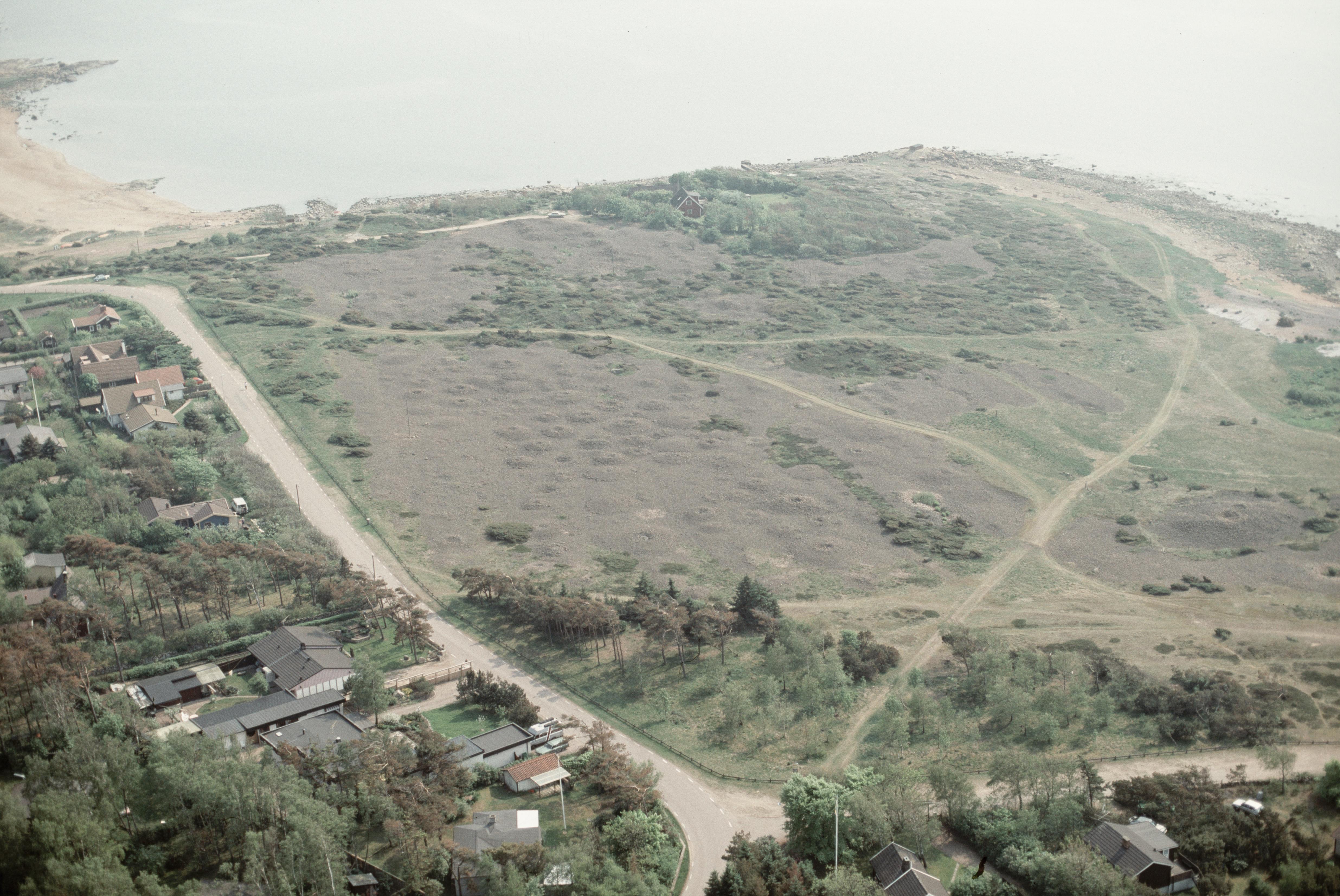 Beskrivning: Påarps tätort. Gravfält "Sänke hög" RAÄnr Trönninge 9:1 vid bildens mitt. Bilden är tagen mot (väderstreck): SV