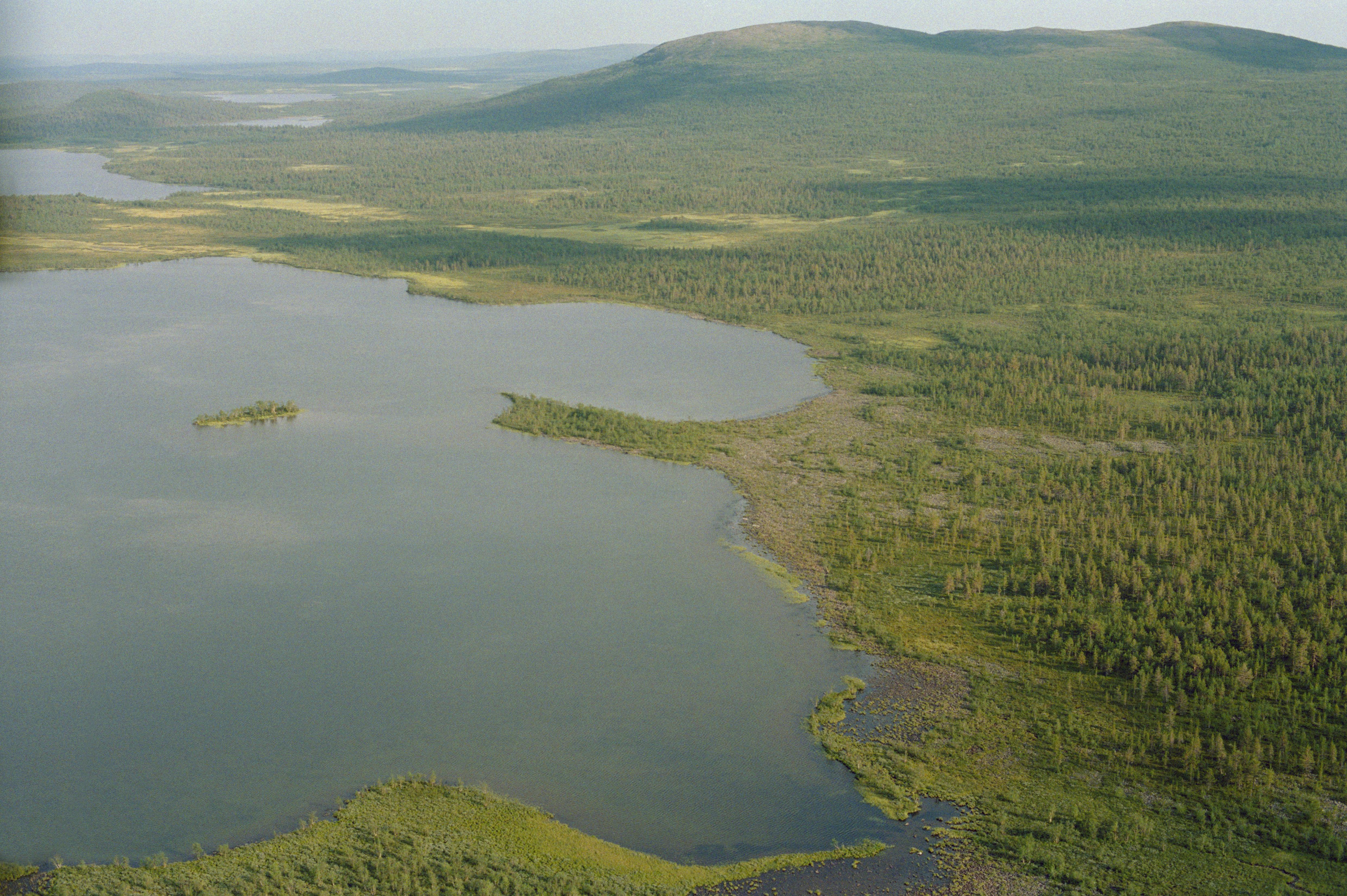 Beskrivning: Två samiska offerplatser i området Haltiosaari i Saivorova by vid sjön Isosaivo. På udden i bildens mitt offerplats RAÄnr Gällivare 73:1 och på holmen (till vänster om udden) offerplats Gällivare 97:1. Bilden är tagen mot (väderstreck): OSO