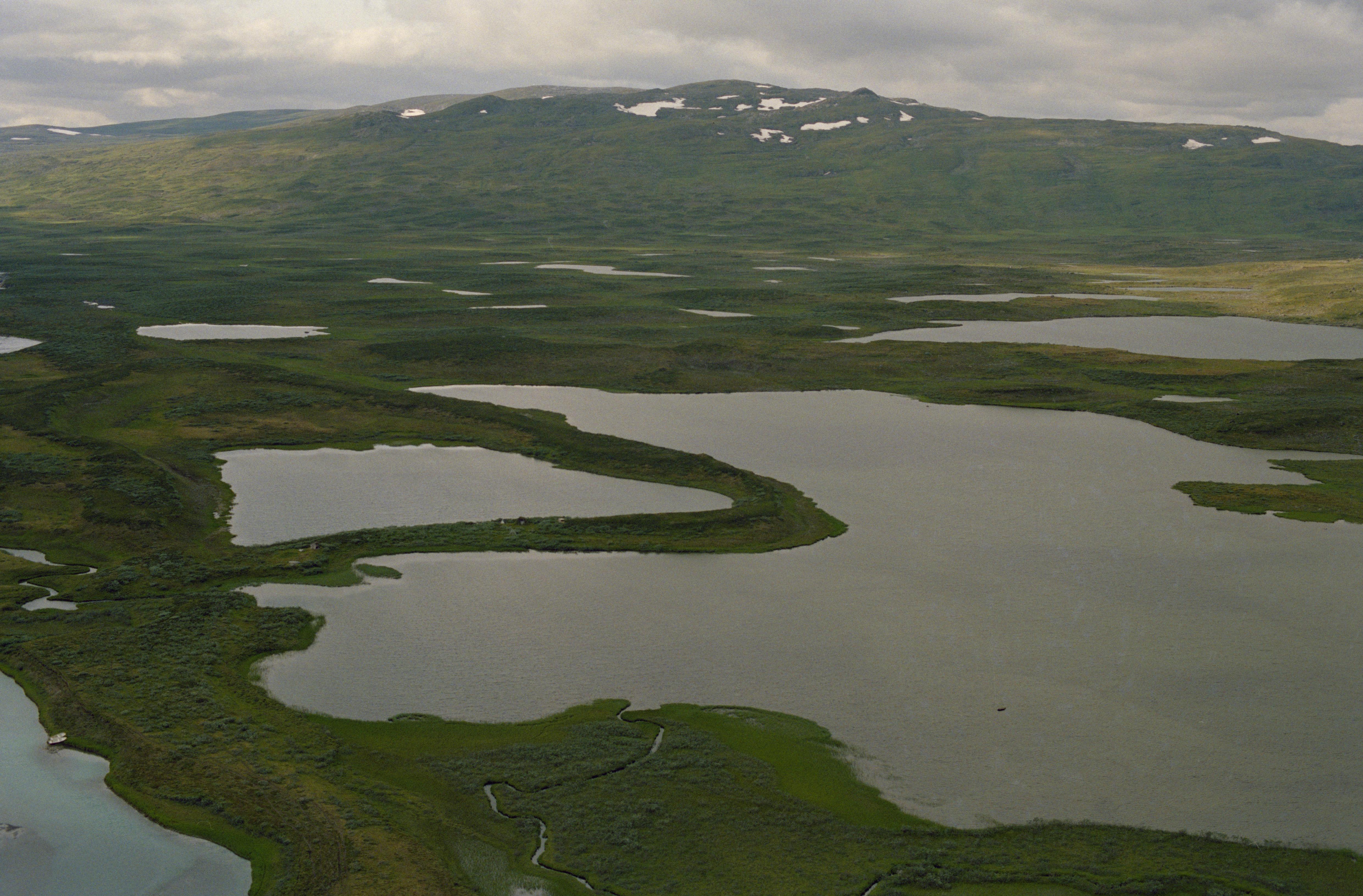 Beskrivning: Område med små sjöar sydväst om fjällområdet Låutak (Låvdak). Sjön Låvdajávarasj vid ån Låvdajåhkå. Till vänster om bildens mitt härd RAÄnr Jokkmokk 563:1 och renvall Jokkmokk 446:1. Området ingår i Padjelanta (Badjelánnda) nationalpark och världsarvet Laponia. Bilden är tagen mot (väderstreck): VNV