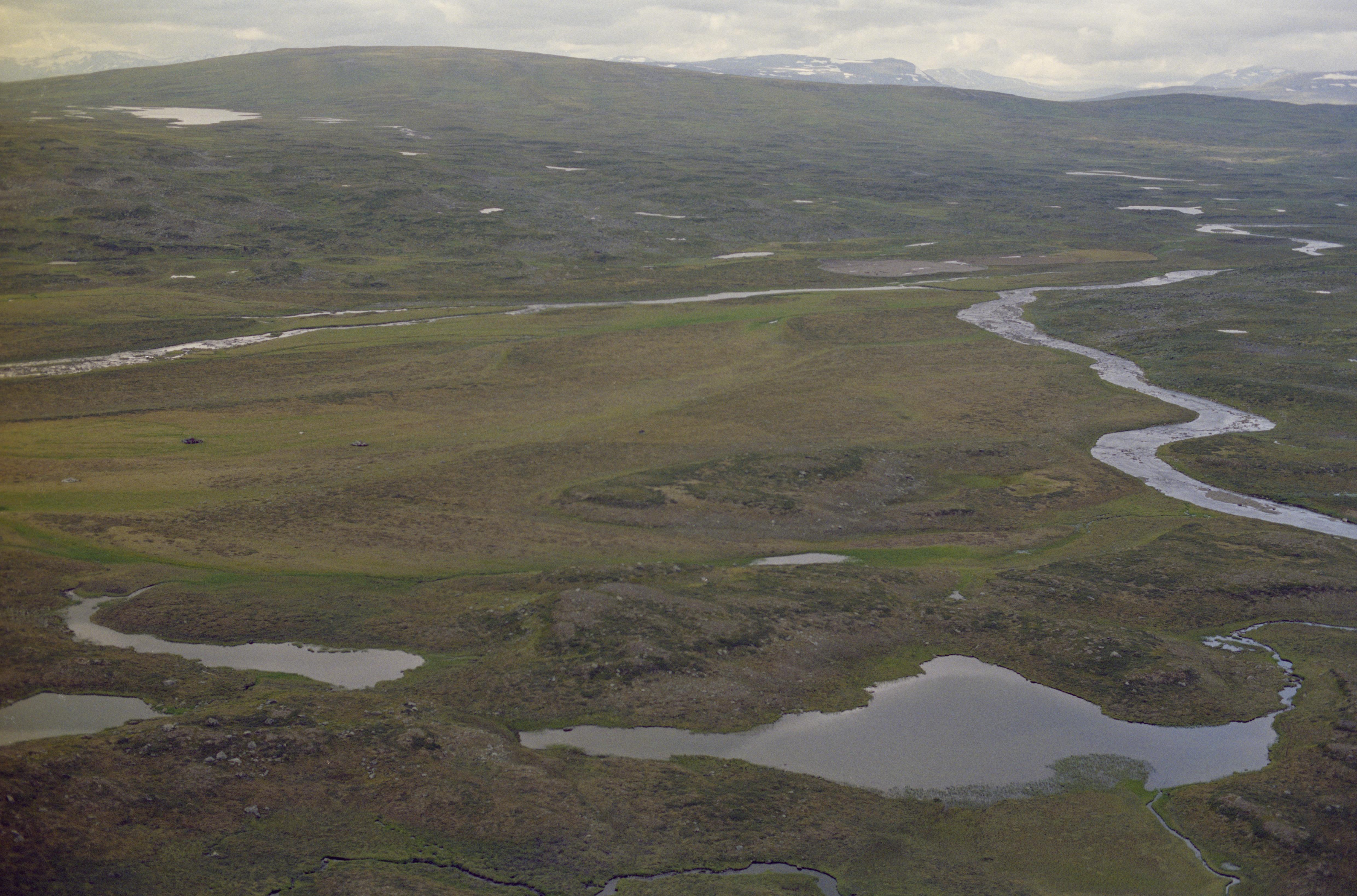 Beskrivning: Ån Sierkajåkkå (Sierggajåhkå) vid området Skuollavallda (Skuollávallda) på västsidan av fjället Kisuris (Gisuris). Vid bildens mitt renvall RAÄnr Jokkmokk 910:1, härd Jokkmokk 912:1, m.fl. Området ingår i Padjelanta (Badjelánnda) nationalpark och världsarvet Laponia. Bilden är tagen mot (väderstreck): V