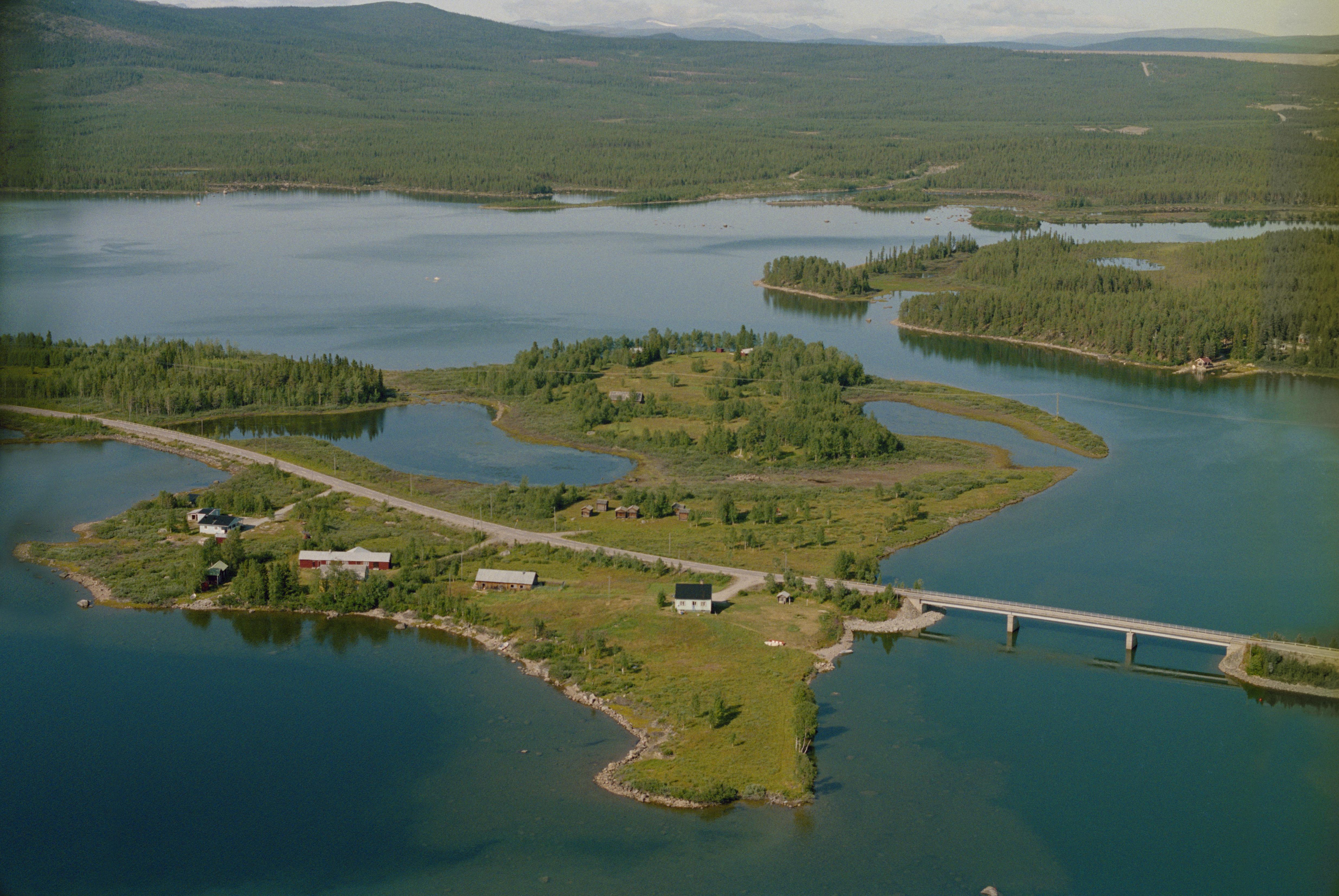 Beskrivning: Byn Tjåmotis (Tjoammbe) vid utloppet till Blackälven (Smadjeädno) mellan sjöarna Tjåmodisjaure (Tjåmodisjávrre) och Skalka (Skálkká). På udden över bildens mitt offerplats RAÄnr Jokkmokk 35:1. Bilden är tagen mot (väderstreck): NNV