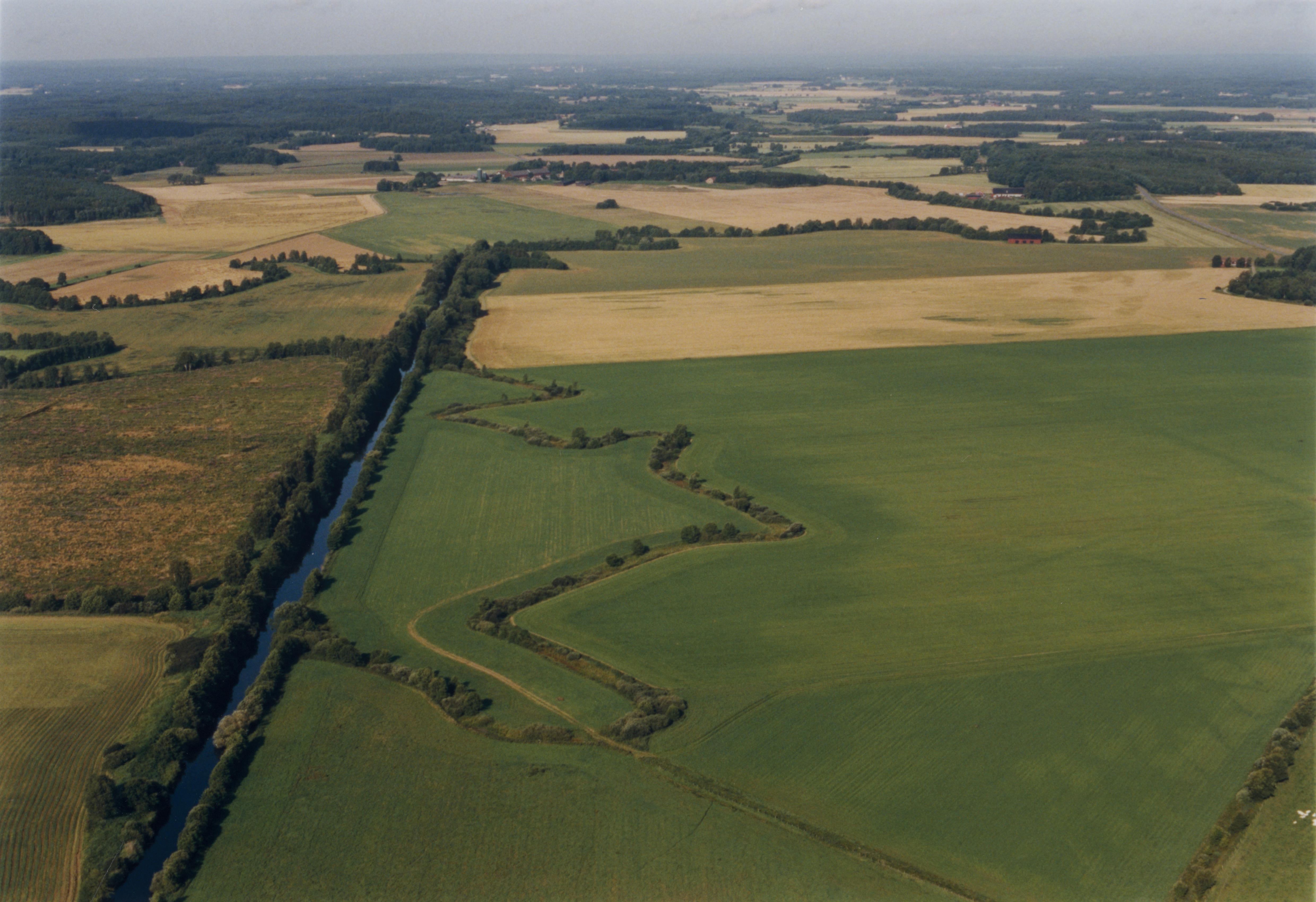 Beskrivning: Almaån på gränsen mellan socknen Gumlösa och Gryt (till höger) öster om Sinclairsholms slott och Gumlösa by. Bilden är tagen mot (väderstreck): V