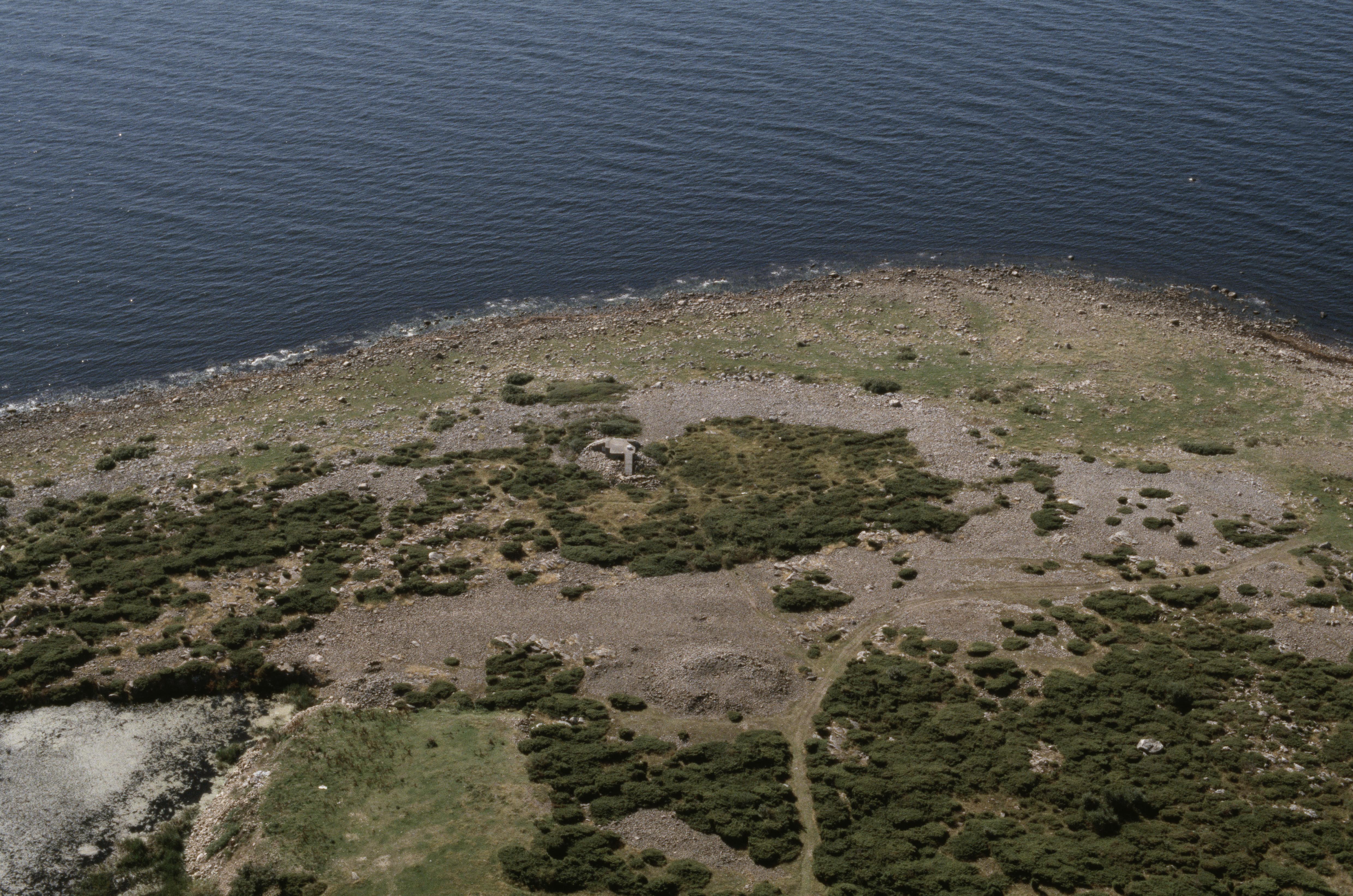 Beskrivning: Bjärekusten / Bjärehalvön. Fornlämningsmiljö vid Dagshög - Burensvik, bl.a. röse RAÄnr Västra Karup 132:1 vänster om bildens mitt. Bilden är tagen mot (väderstreck): SV