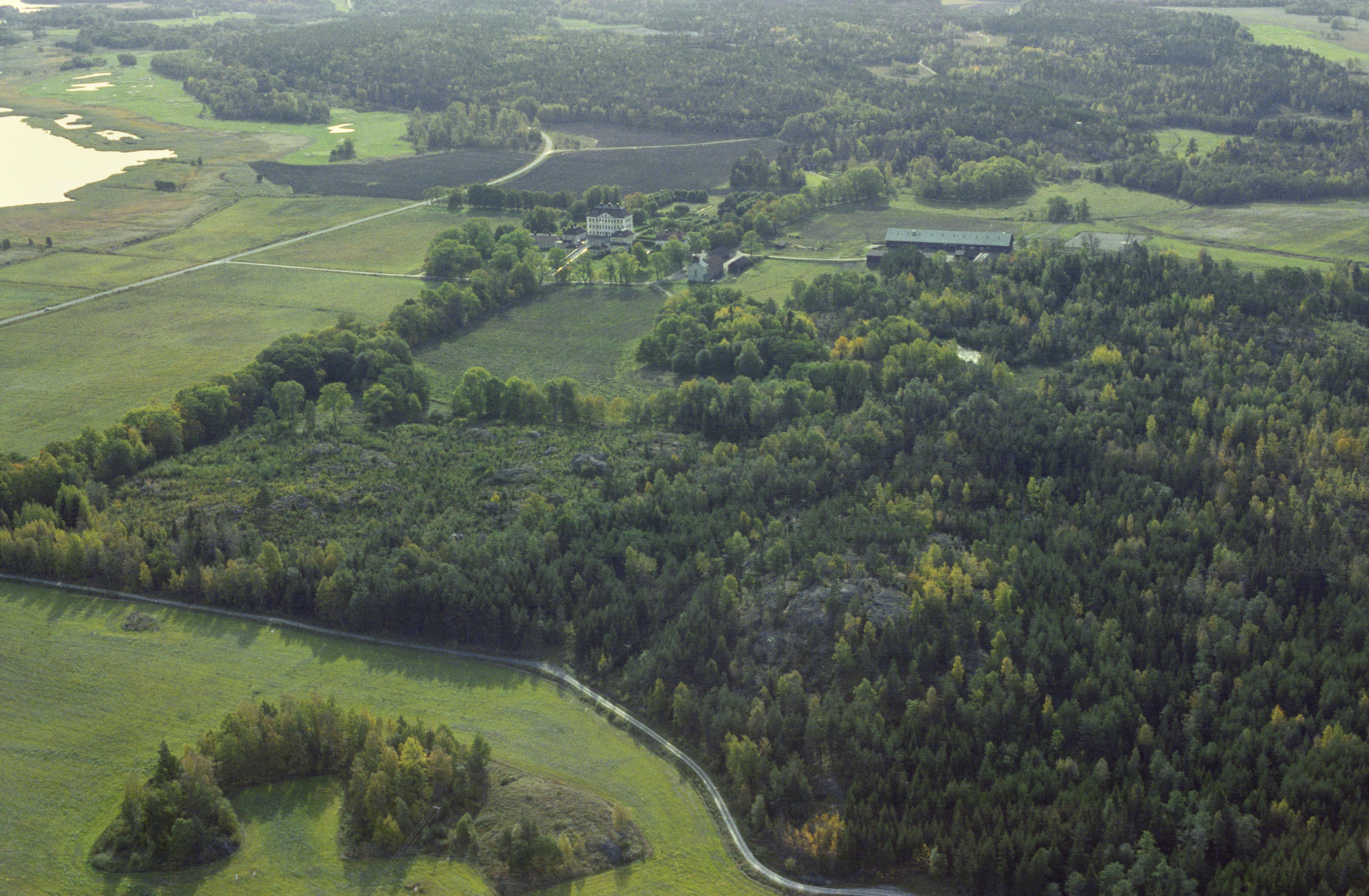 Beskrivning: I bildens mitt byggnadsminnet / slottet Tureholm (skrivs även Thureholm). Tureholmsviken uppe till vänster. Bilden är tagen mot (väderstreck): SSO
