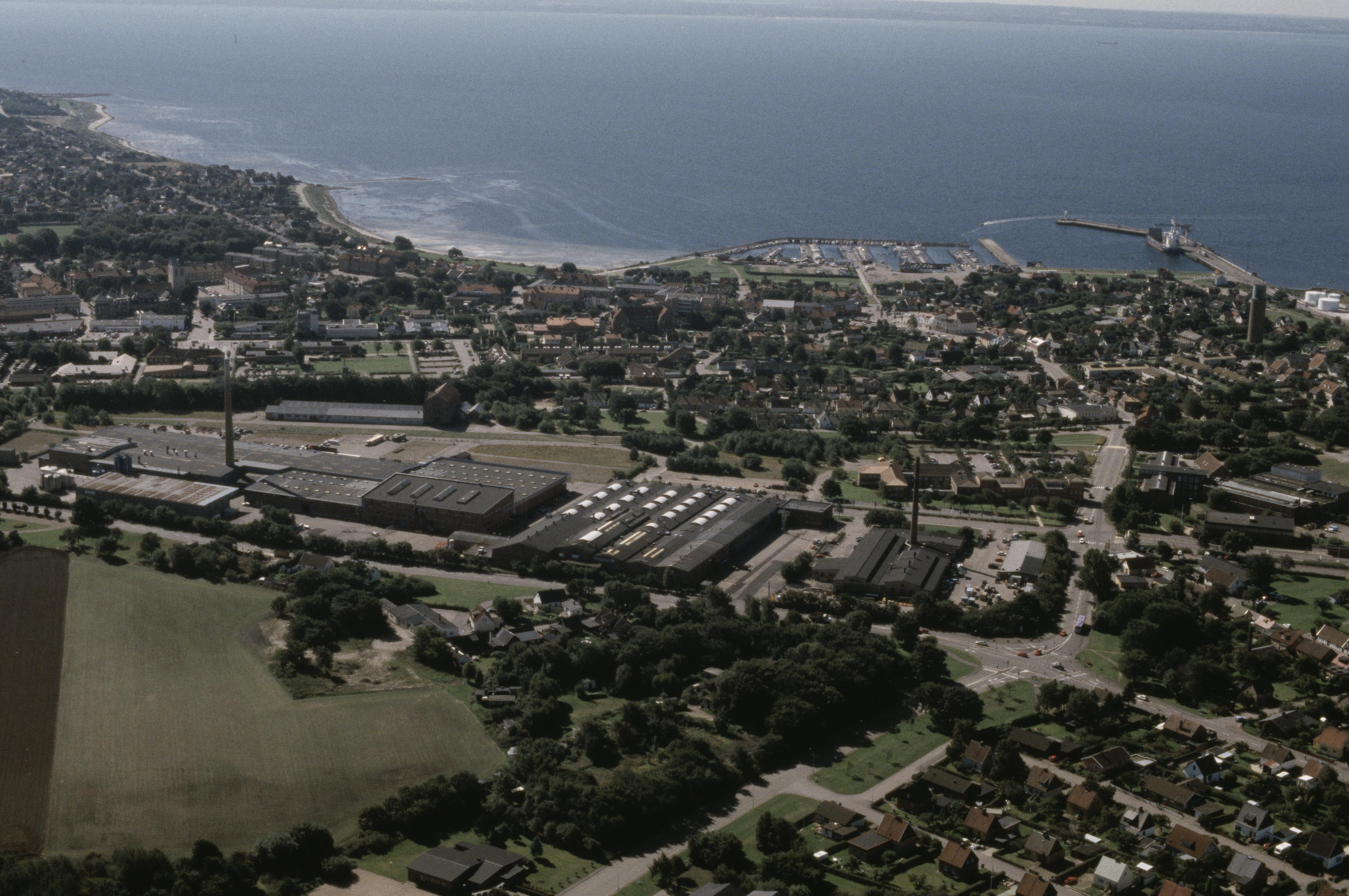 Beskrivning: Höganäs tätort. Höganäs kyrka uppe till vänster. Höganäs bruk vid bildens mitt. Bilden är tagen mot (väderstreck): SV