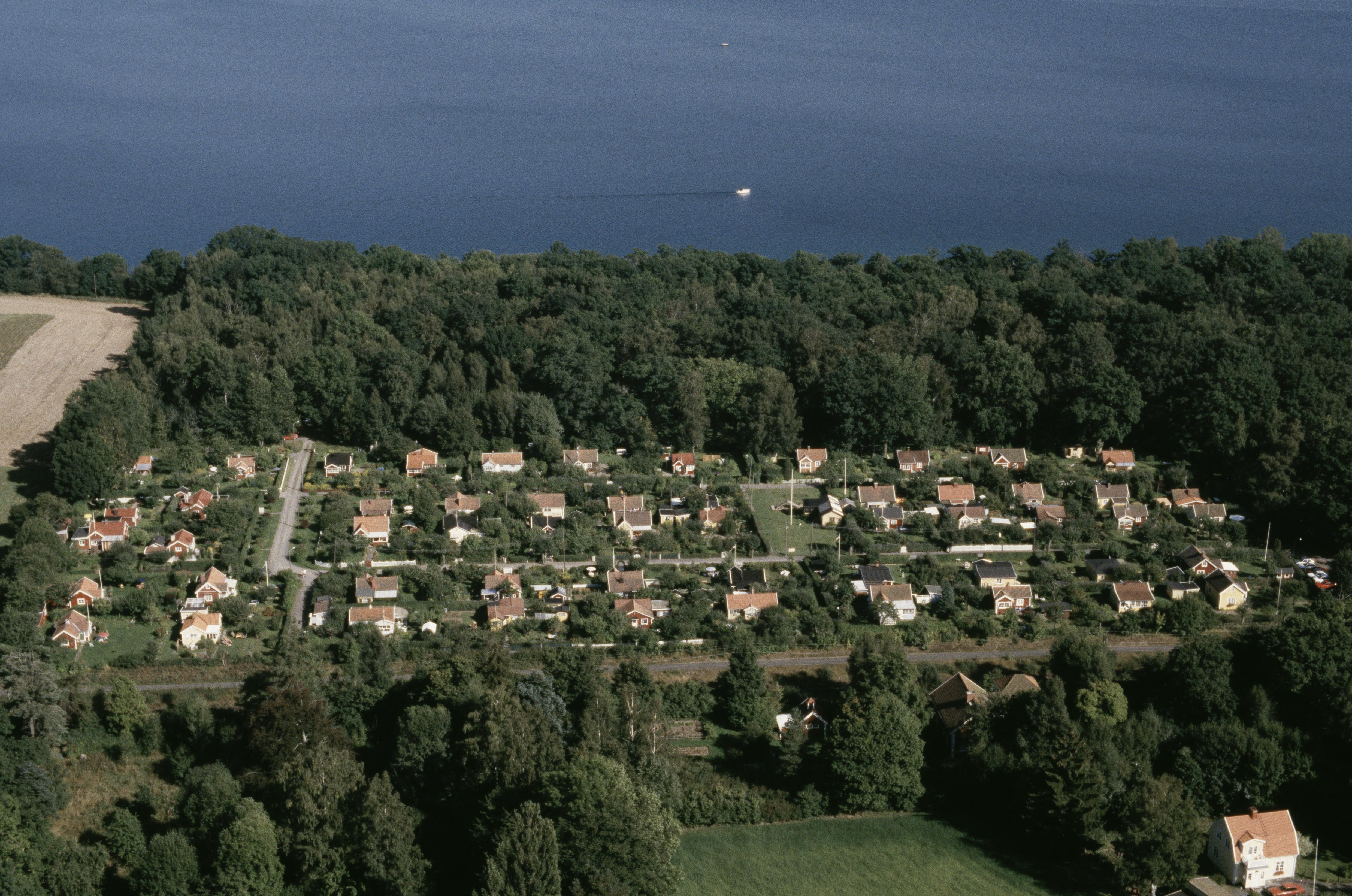 Beskrivning: Eklundshovs koloniträdgårdsområde. Järstorp socken i bildens vänstra kant. Bilden är tagen mot (väderstreck): Ö