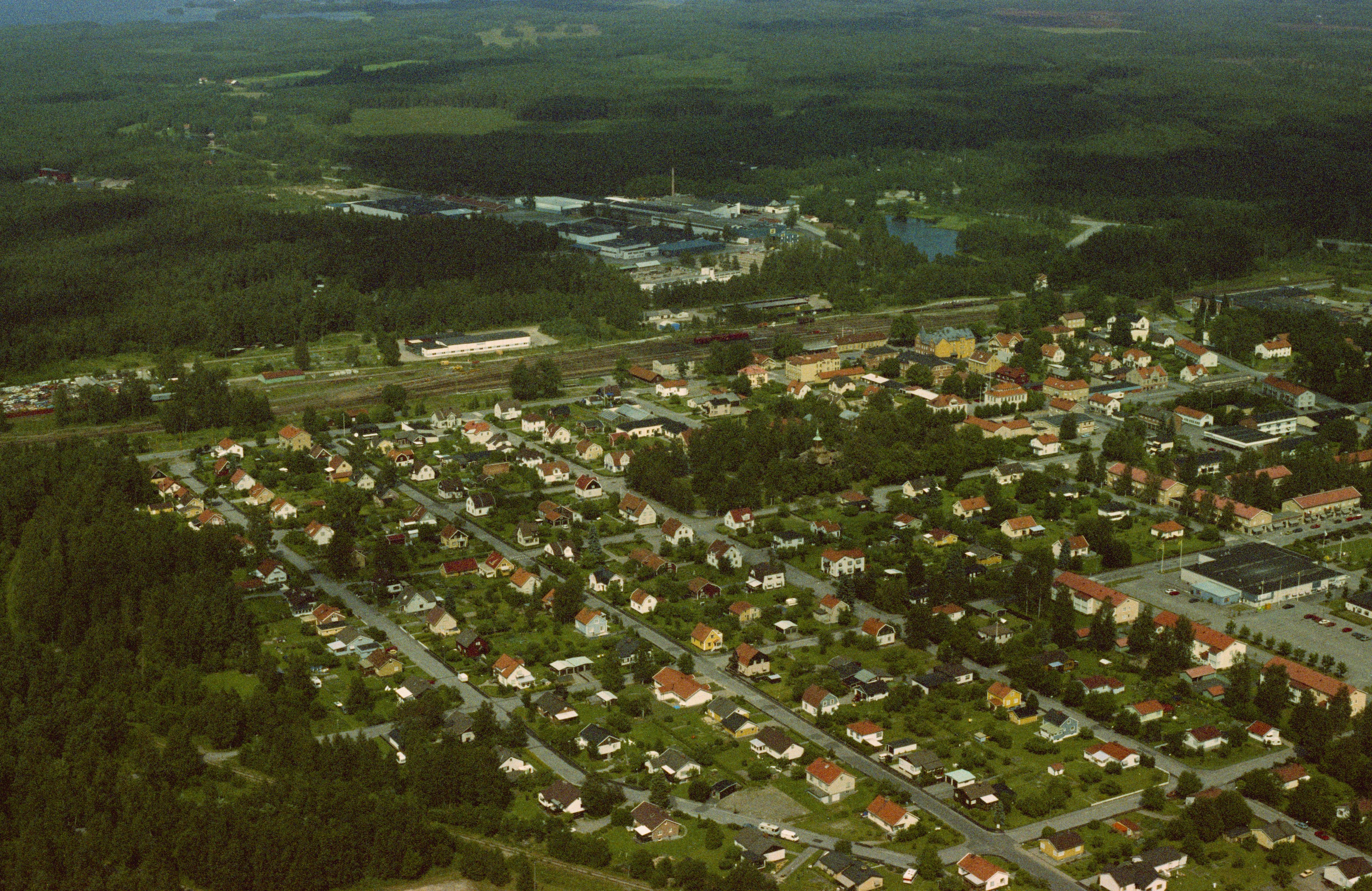 Beskrivning: (Tid. Ramundeboda socken). Laxå tätort. Ramundeboda kyrka vid bildens mitt. Bilden är tagen mot (väderstreck): NNO