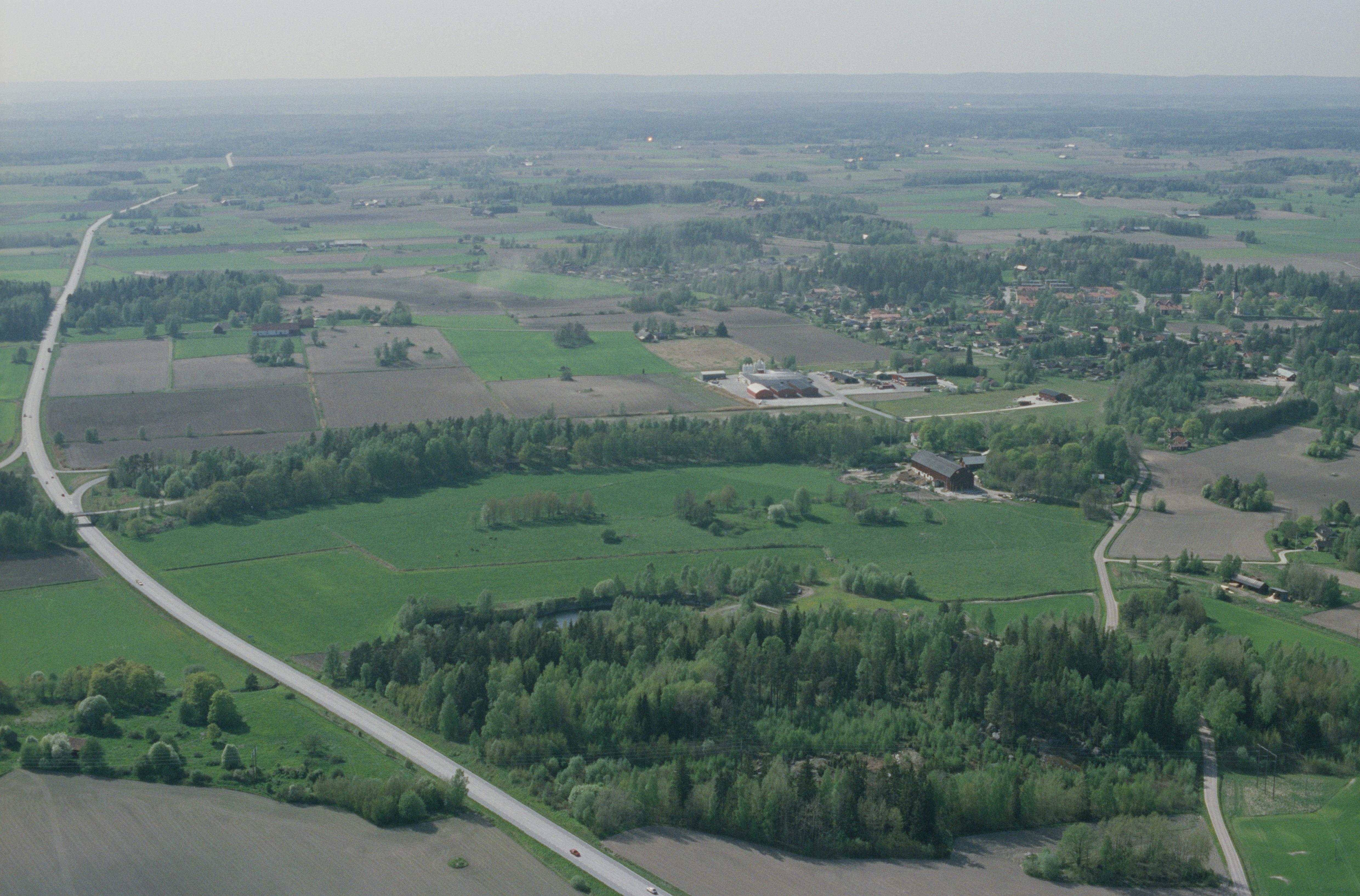 Beskrivning: Tidesta gamla tomt RAÄnr Glanshammar 170:1 vid bildens mitt. Glanshammars kyrka och tätort uppe till höger. Bilden är tagen mot (väderstreck): VNV