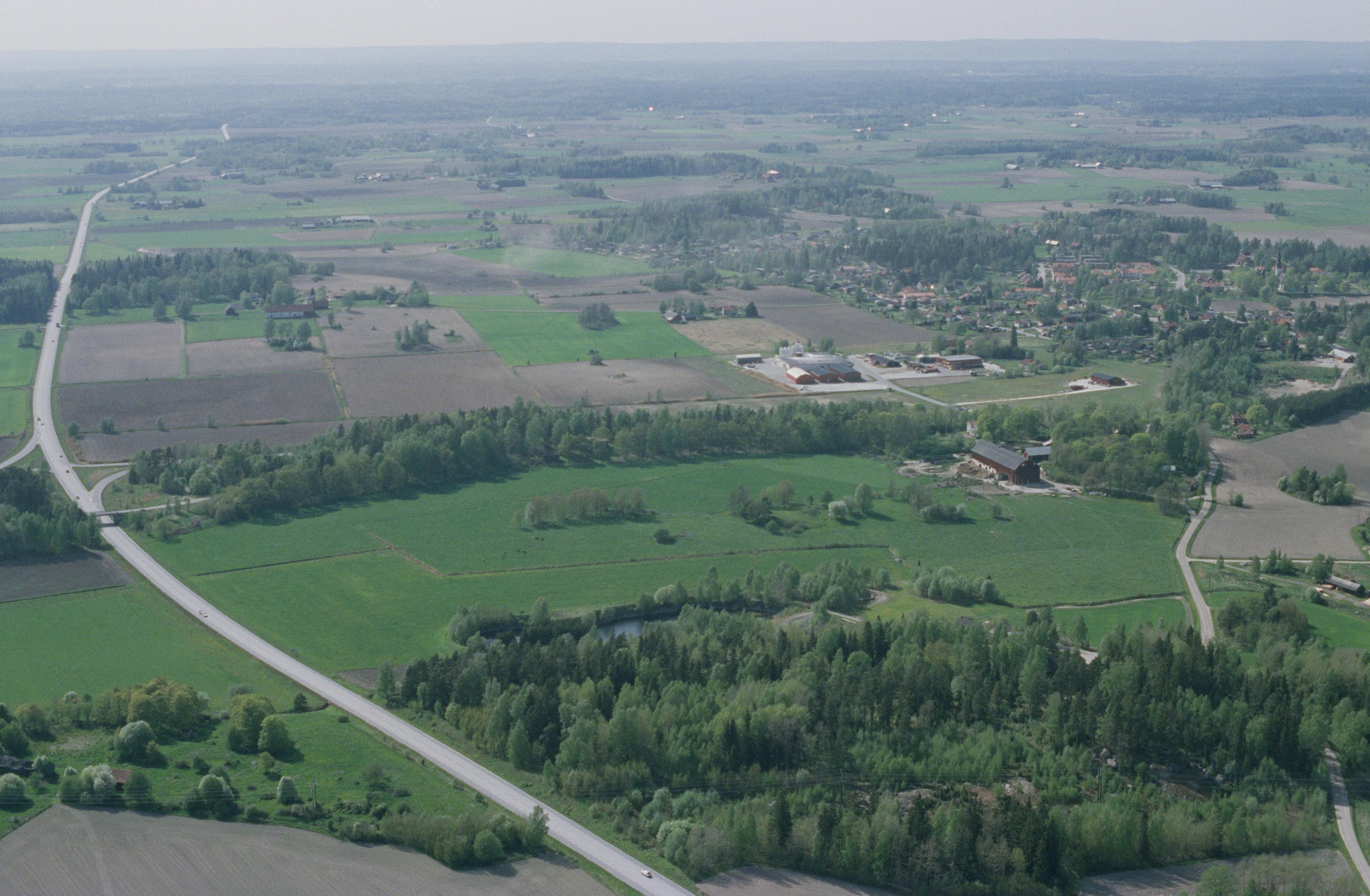 Beskrivning: Tidesta gamla tomt RAÄnr Glanshammar 170:1 vid bildens mitt. Glanshammars kyrka och tätort uppe till höger. Bilden är tagen mot (väderstreck): VNV
