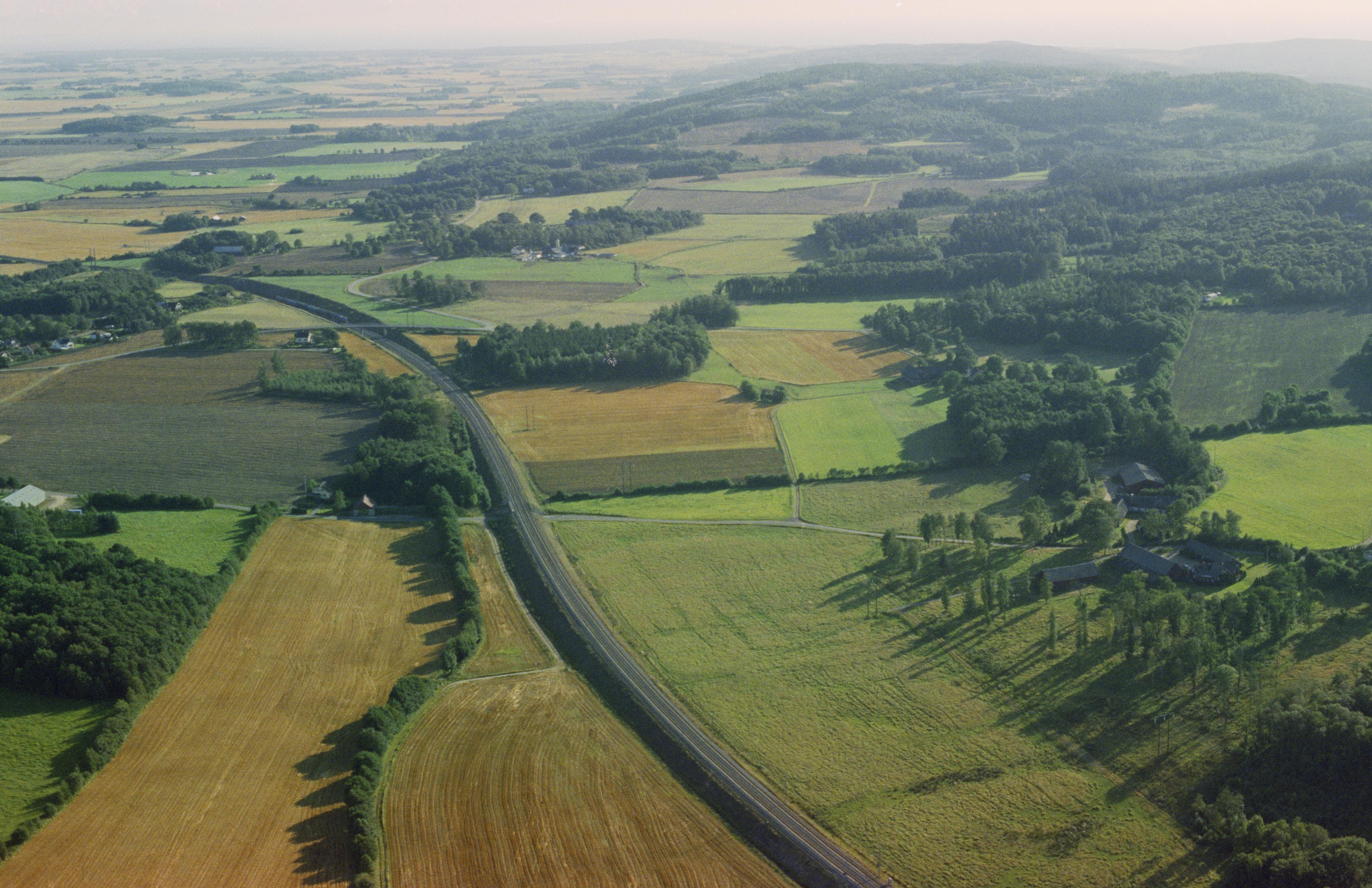 Beskrivning: Vid Hörsås - Lilla Berg - Noregård - Öringe, innan bygge av väg E6 mellan Laholm och Slöinge. Till höger boplats RAÄnr Getinge 82:1-2. Bilden är tagen mot (väderstreck): SSV