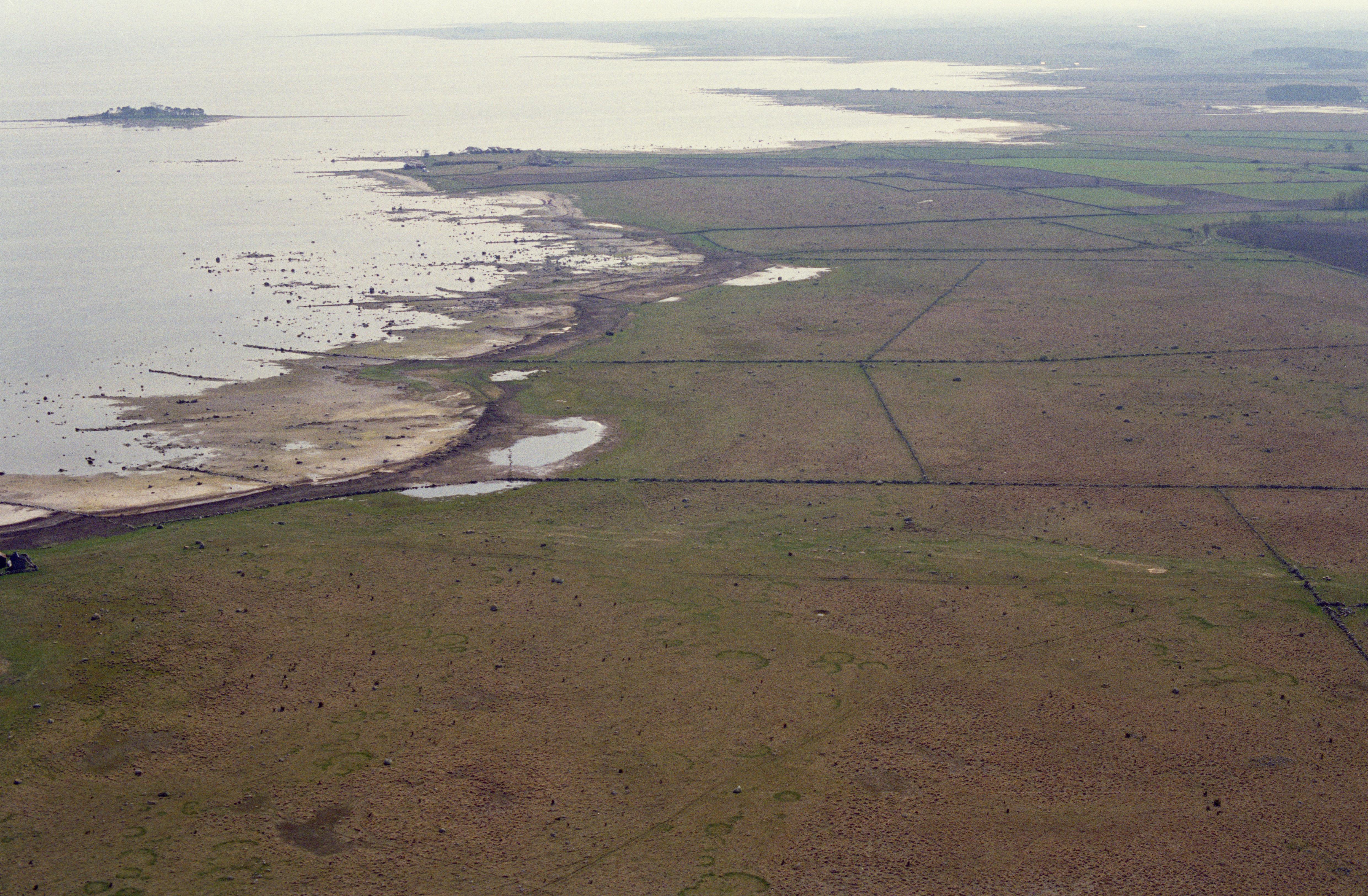 Beskrivning: Maren vid Jättegravarna. Husgrunder RAÄnr Löt 65:5, 65:9-12, hägnader Löt 65:12, stensättning Löt 94:1, grav Löt 19:1, röse Löt 21:1 m.fl. I bildens övre del holmen Marskär, Bodudden och Mörbyudd. Bilden är tagen mot (väderstreck): SO