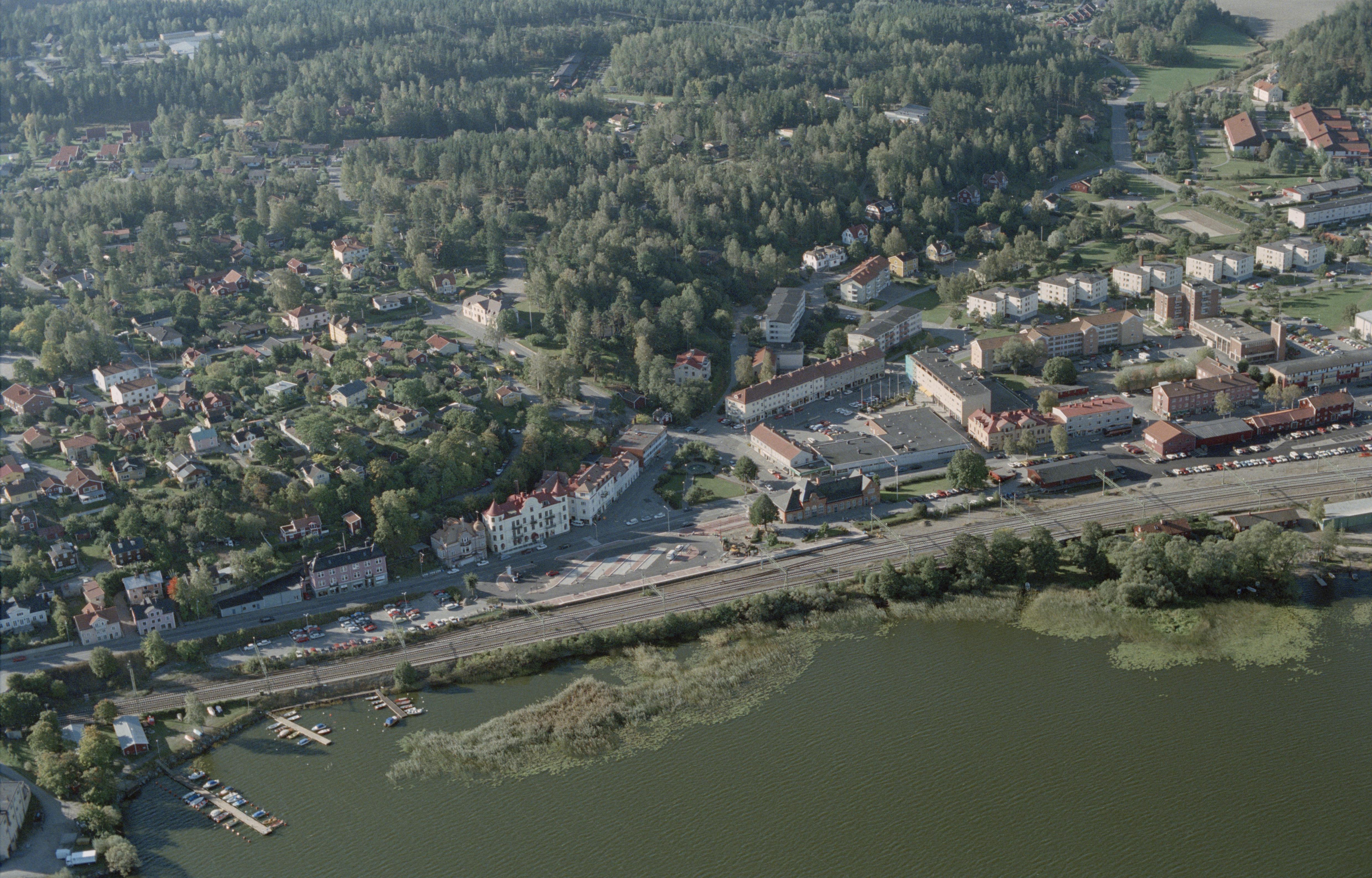 Beskrivning: Gnesta tätort vid Frösjön. Gnesta järnvägsstation under bildens mitt. Bilden är tagen mot (väderstreck): SV