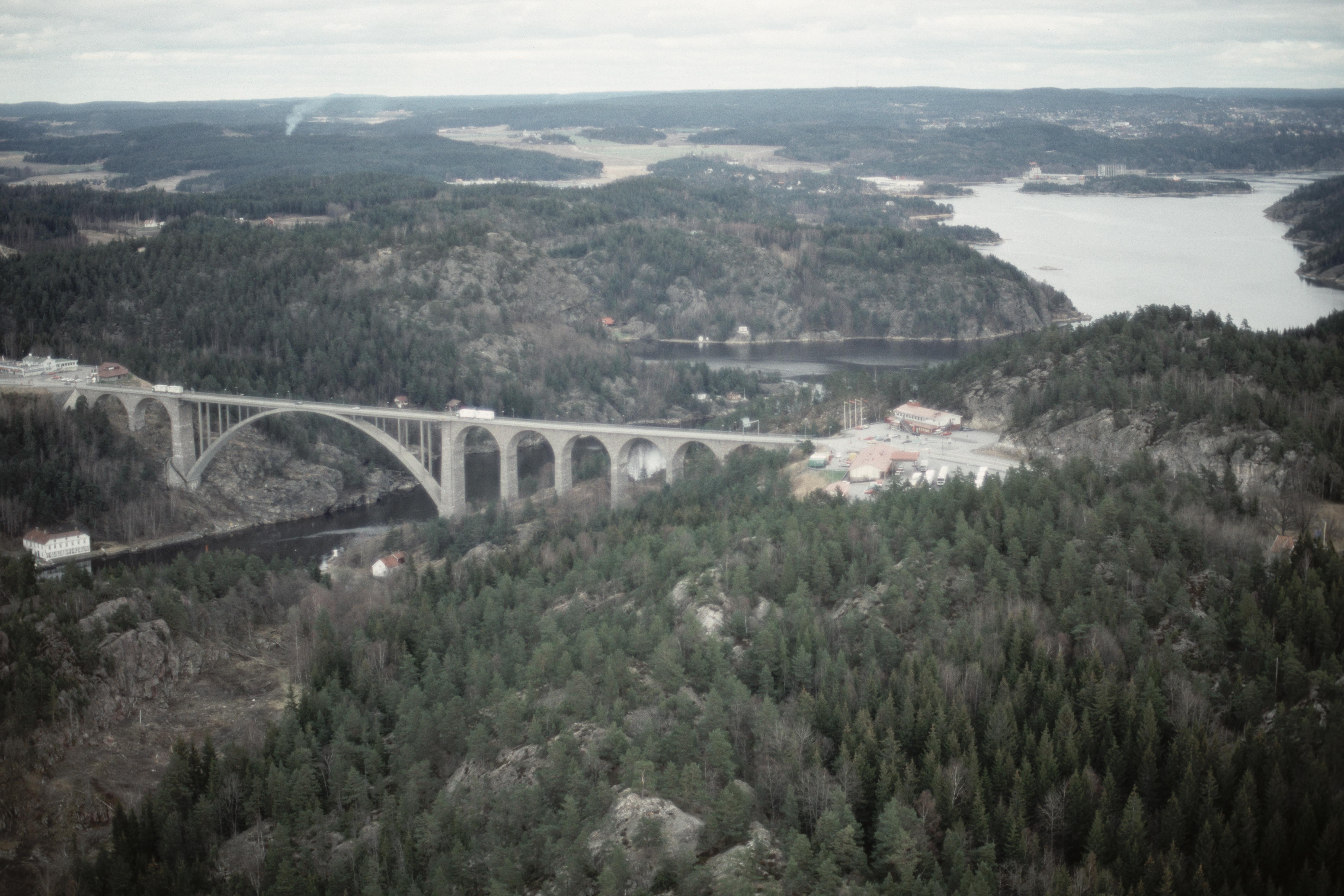 Beskrivning: Svinesundsbron på landgränsen mot Norge (till vänster). Sedan 1600-talet gränsort med befästningsanläggningar, bl.a. RAÄnr Hogdal 474. Bilden är tagen mot (väderstreck): NO