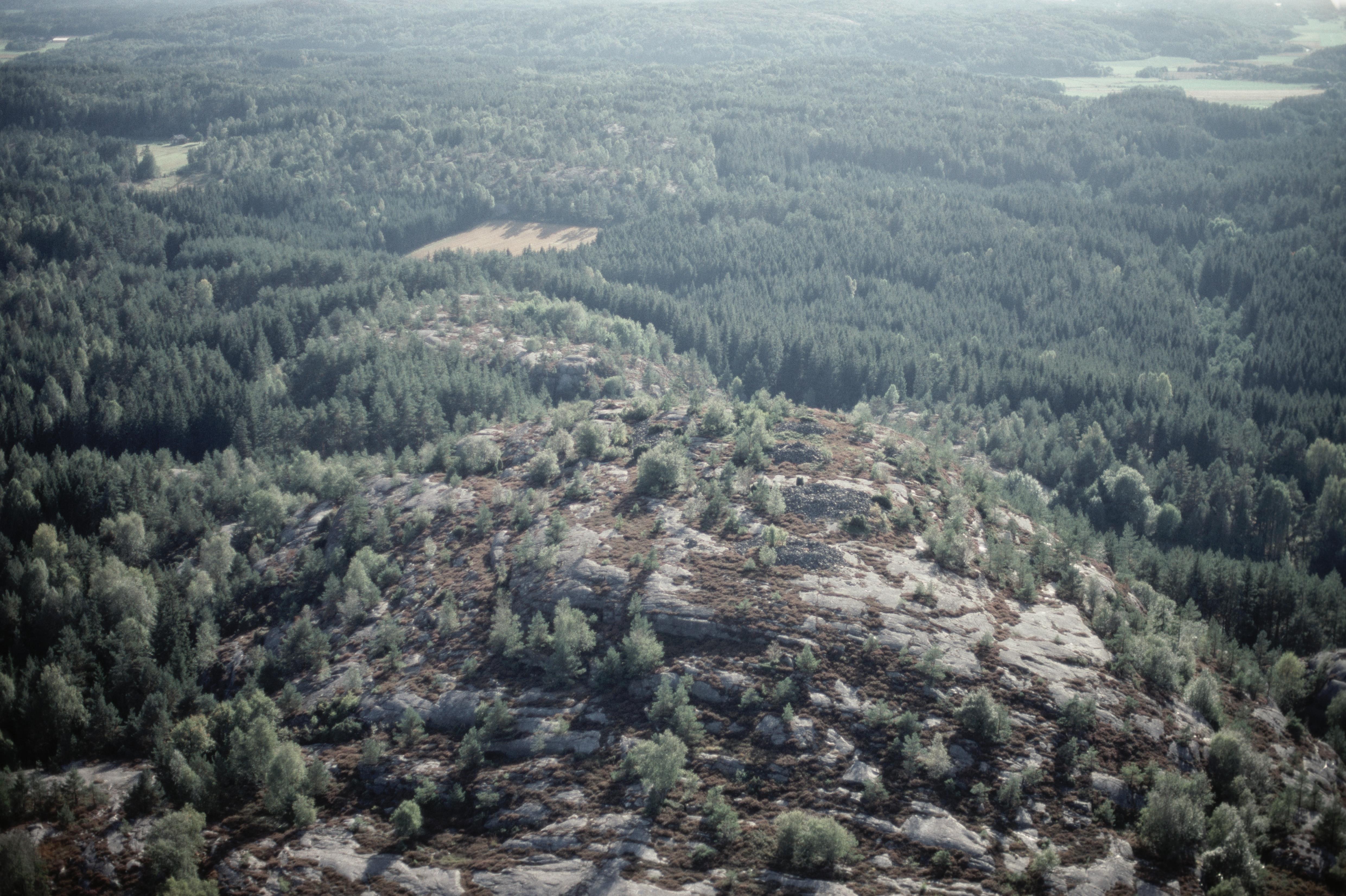 Beskrivning: Rösegravfält RAÄnr Kville 269:1 sydost om Kalleby. Bilden är tagen mot (väderstreck): SV