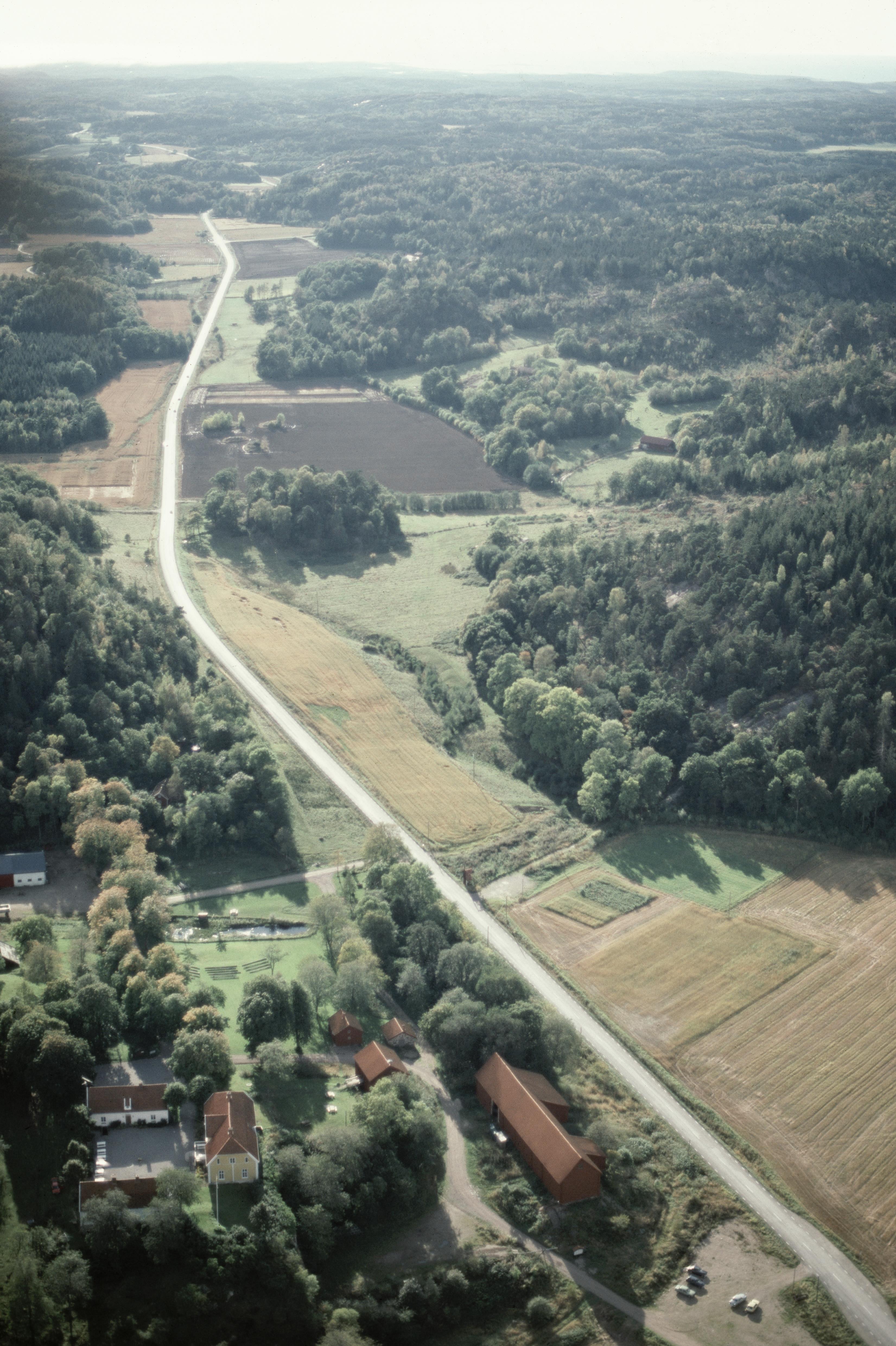 Beskrivning: Åby herrgård / säteri. Byggnadsminne RAÄnr Tossene 335:1. Fornlämningsområde vid gränsen mot Bro socken i Åbyfjorden. Vägmärke RAÄnr Tossene 687:1. Bilden är tagen mot (väderstreck): SV