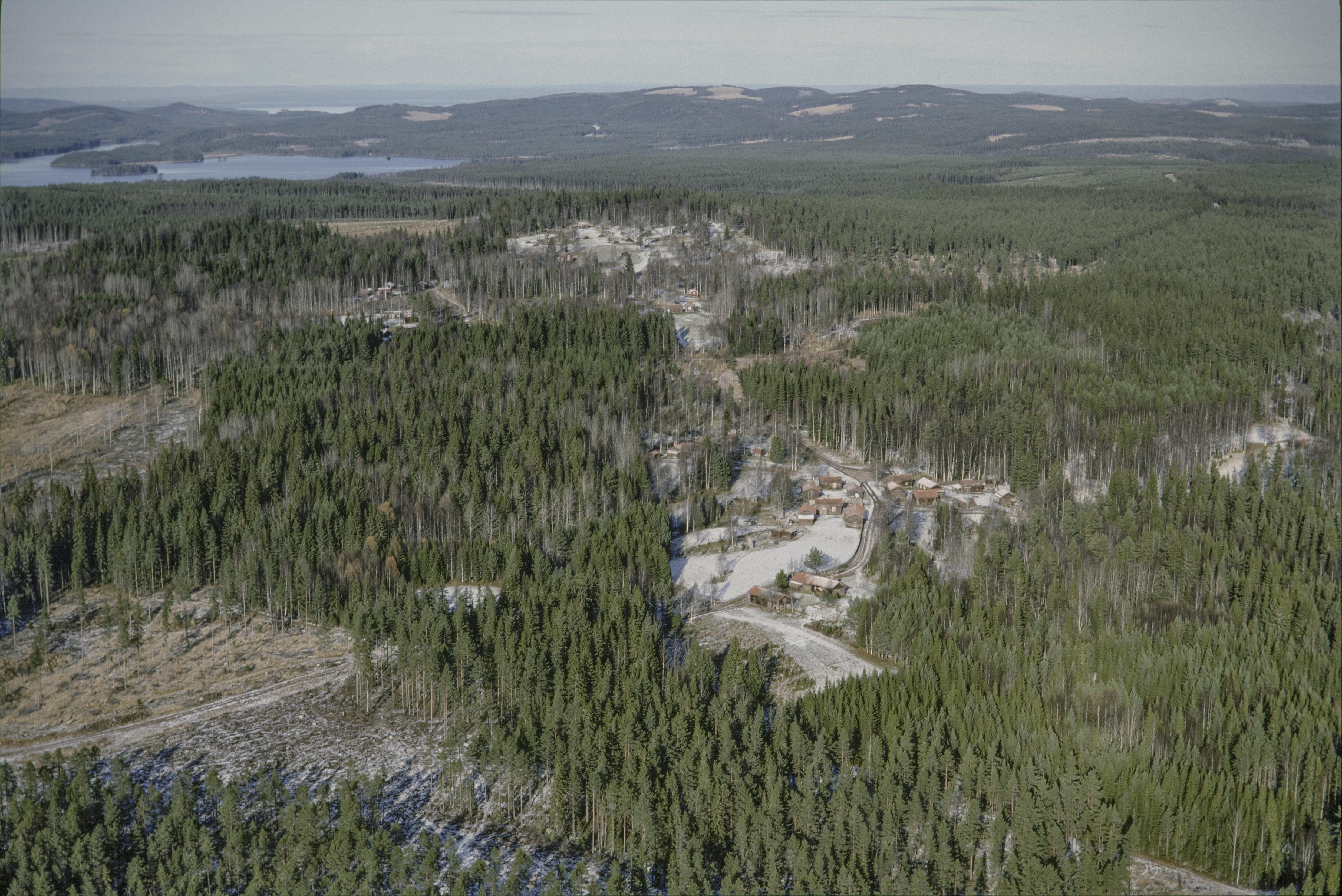 Beskrivning: Fäbodsbyn Ljusbodarna med fäbodarna RAÄnr Leksand 513:1-8. Fäbod RAÄnr Leksand 513:8 under bildens mitt. Vandringsvägen Romboleden mot Skinnaråsen till höger. Sjön Ejen uppe till vänster. Bilden är tagen mot (väderstreck): NNO