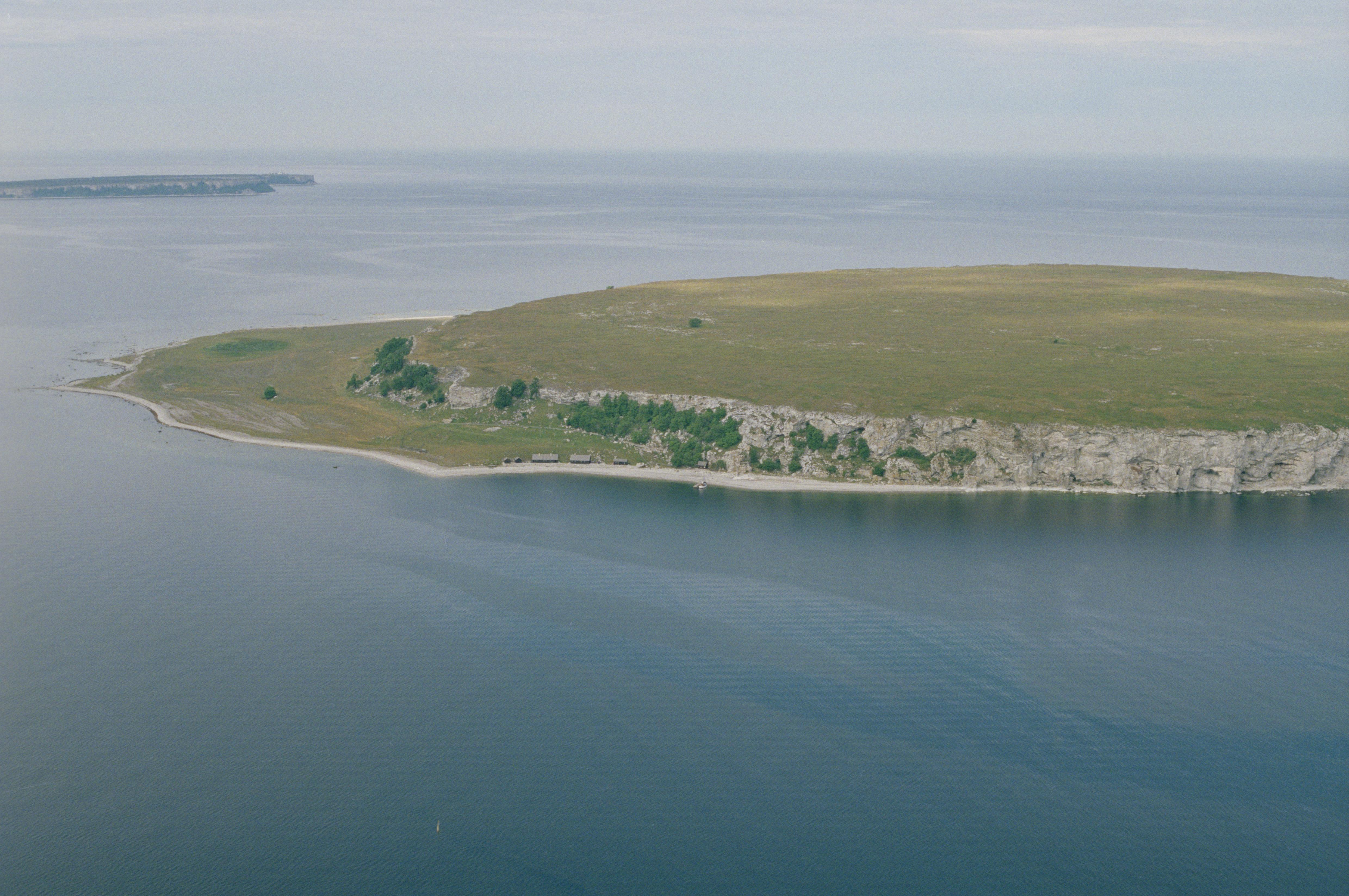 Beskrivning: Lilla Karlsö - en av de två Karlsöarna i Östersjön väster om Gotlandsöns sydvästra kust. På Lilla Karlsö finns flera stensättningar och gravar, bl.a. RAÄnr Eksta 177:1. Stora Karlsö till vänster i bildens övre kant. Bilden är tagen mot (väderstreck): VSV