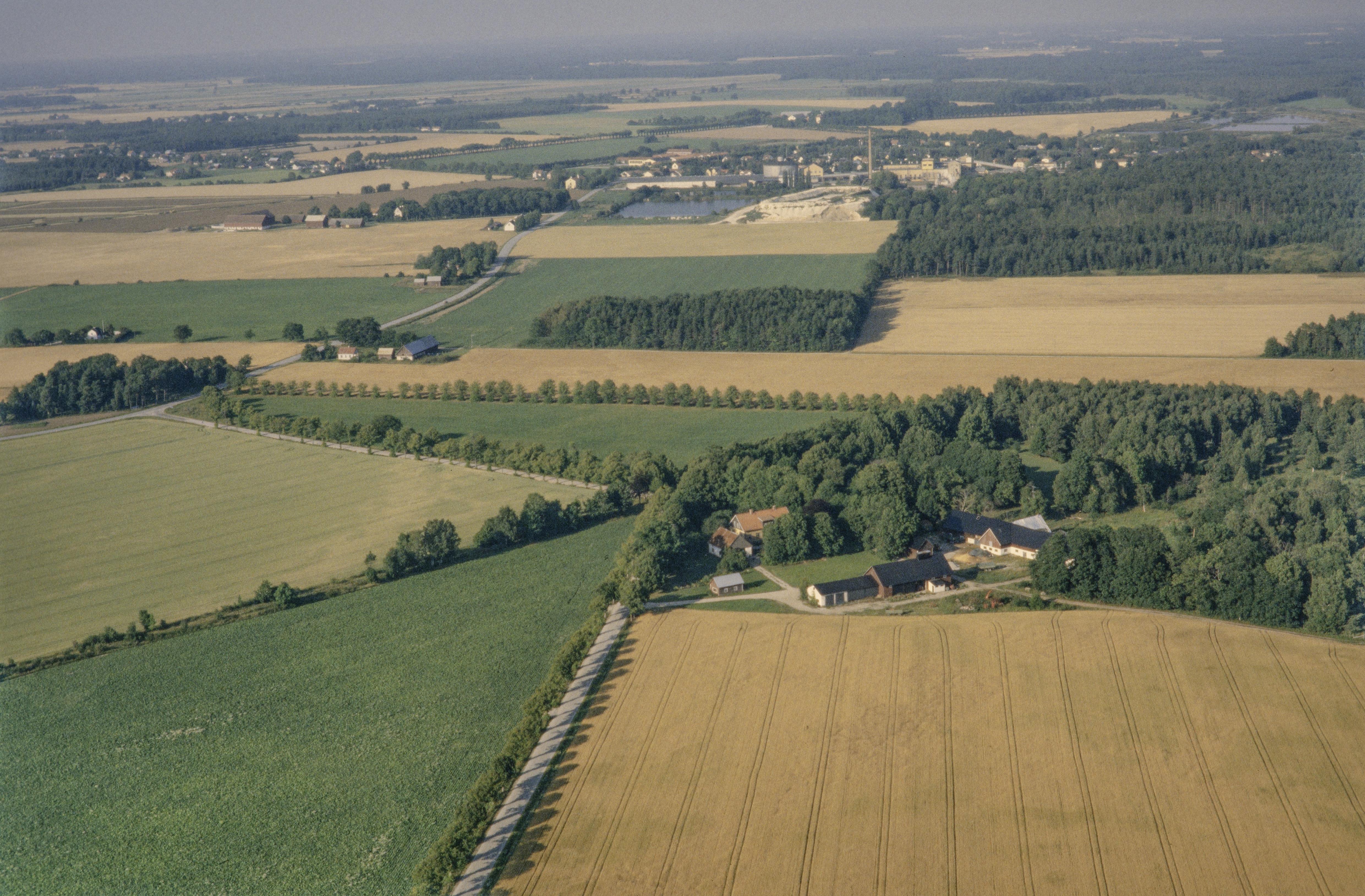 Beskrivning: Till höger om bildens mitt Stenstugu gård. Till vänster över bildens mitt området Varplöse med diverse fyndplatser för svärdslipningstenar RAÄnr Björke 4:1-5 m.m. I bildens övre del tätorten Romakloster (skrivs även Roma kloster) i Roma socken. Bilden är tagen mot (väderstreck): NO
