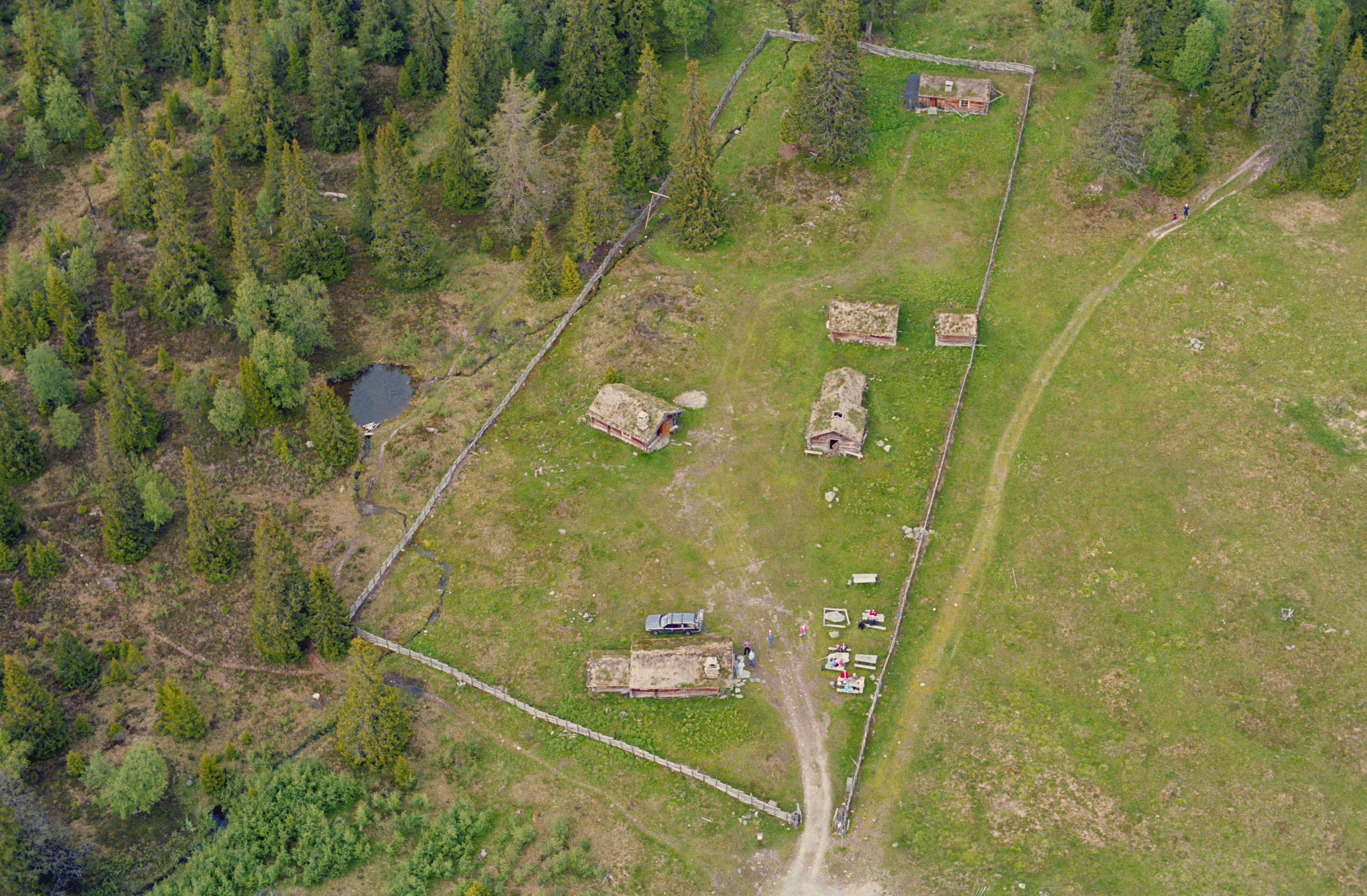 Beskrivning: Östra delen av lågfjället Flatruet (Fleete). Fäbodområdet Ruvallen RAÄnr Tännäs 63:1 mellan bergstopparna Öster-Stoljan och Ruändan (Sjnjaptjegietije). Bilden är tagen mot (väderstreck): NNO
