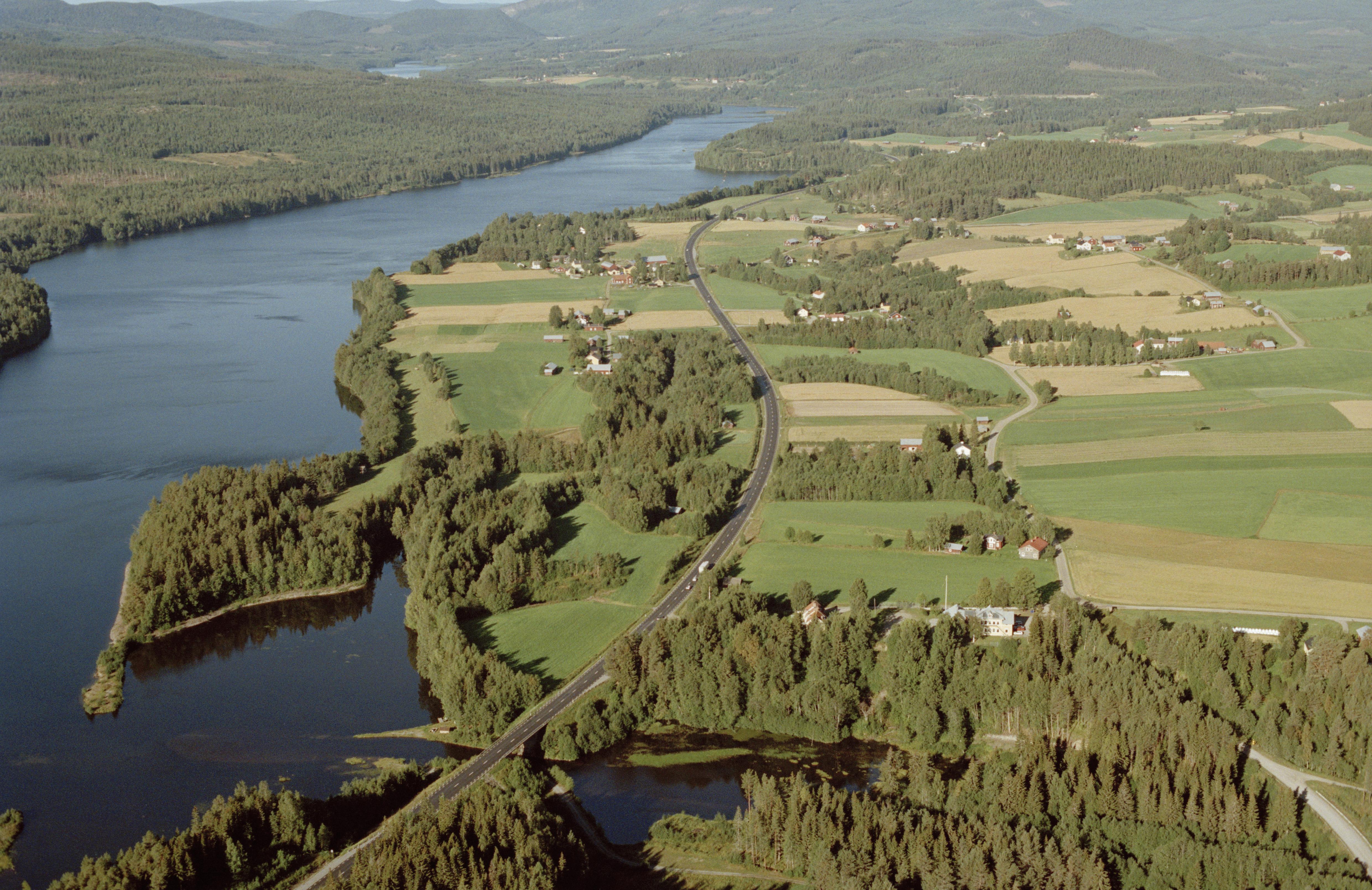 Beskrivning: Indalsälvens dalgång. I bildens nedre del området Svedjan vid ån Gillerans utlopp i älven. Krokvågs gamla tomt RAÄnr Ragunda 321:1 till höger om bildens mitt. Uppe till höger byn Ammer vid Ammeråns utlopp. Bilden är tagen mot (väderstreck): V