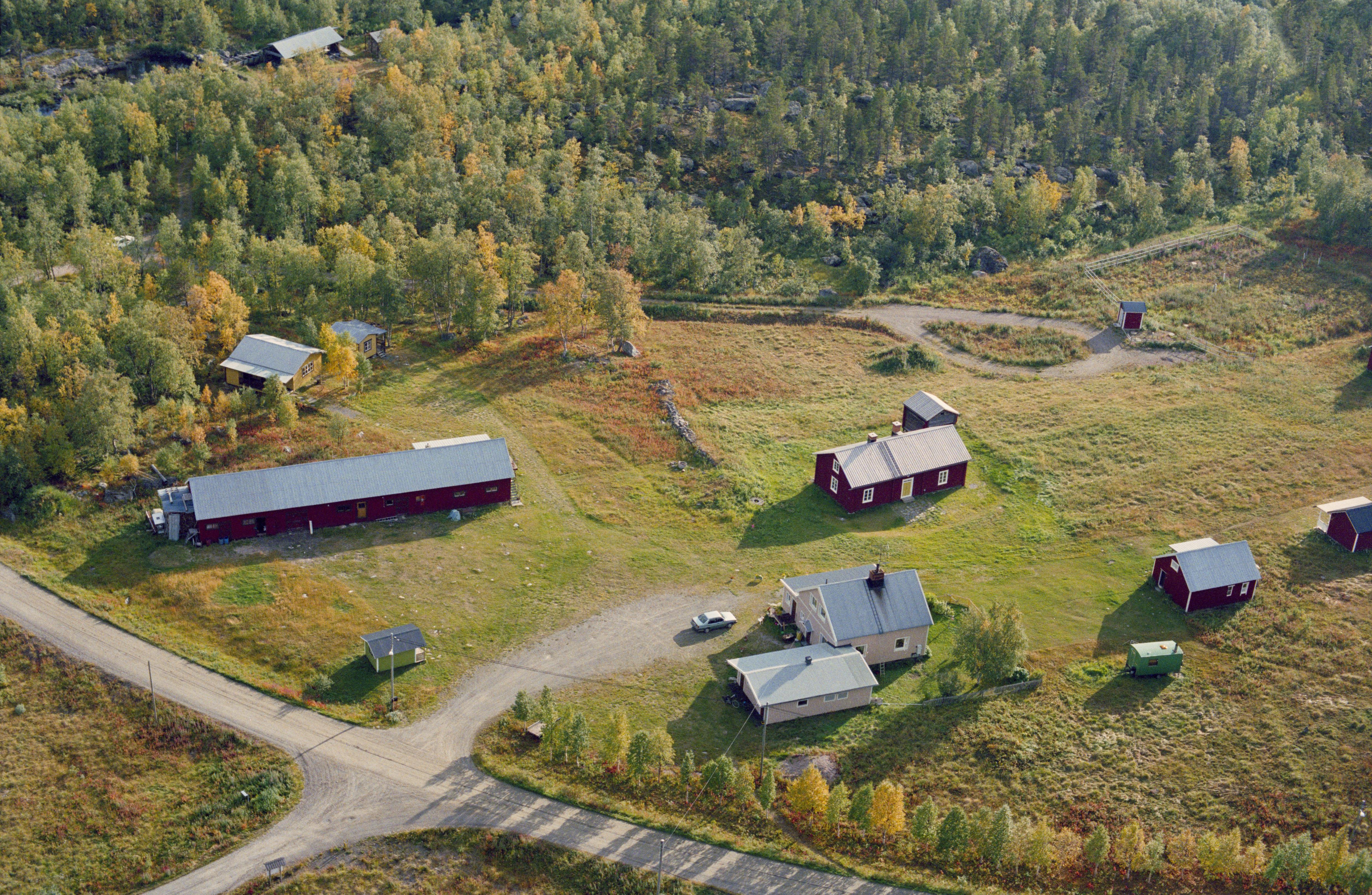 Beskrivning: Adolfsström (skrivs även Adolfström) by och f.d. bruk mellan sjöarna Lárvvejávrre och Mittisjön (Gasskajávrre) vid Laisälven (Lájsso). Vid bildens mitt bruksgården Majorsgården i hyttområde RAÄnr Arjeplog 566:1, m.m. Bilden är tagen mot (väderstreck): SV