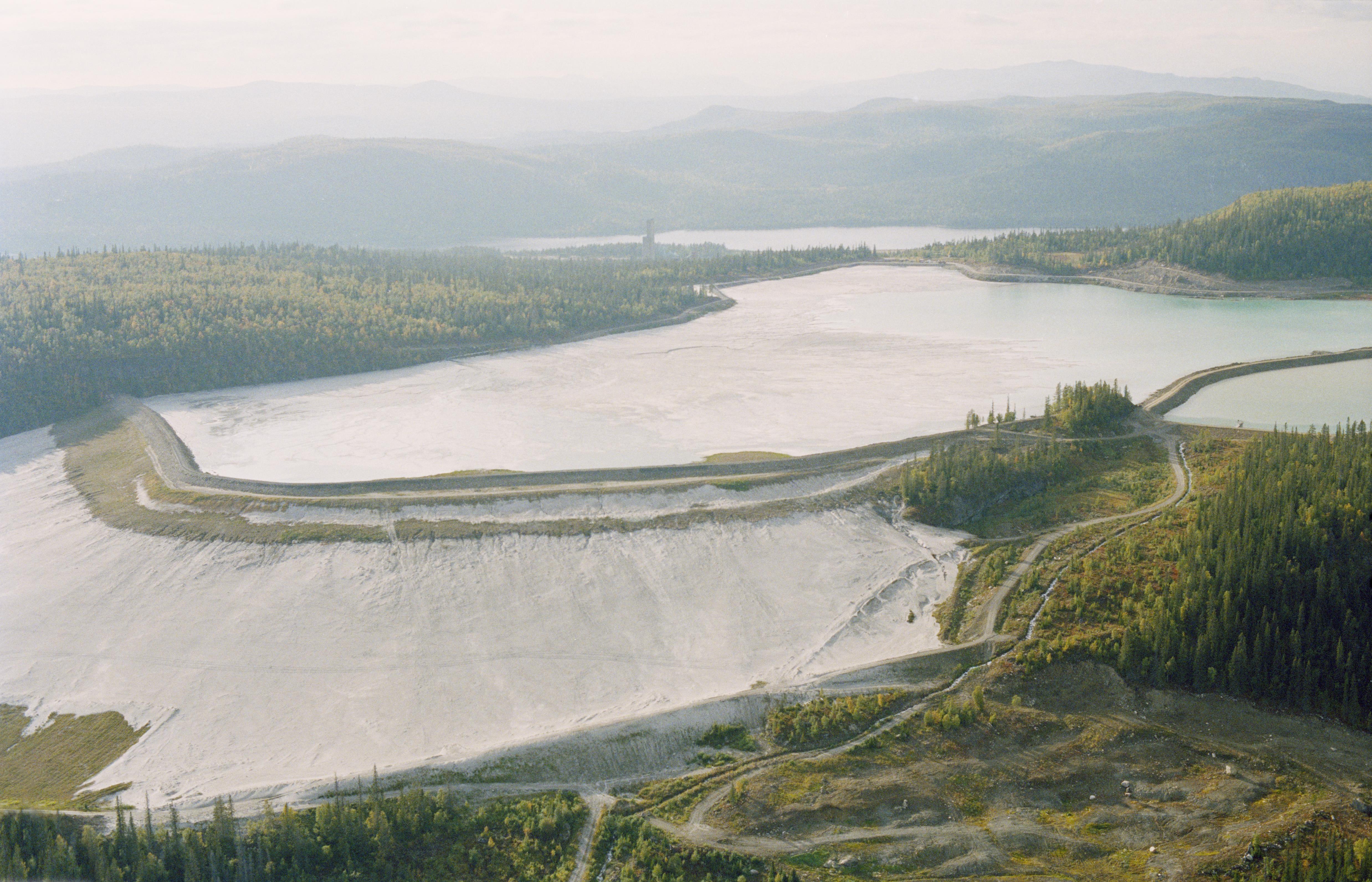 Beskrivning: Slamdammarna i blymalmsgruvan Laisvalls gruva (Laisvalls blygruva). gruvområdet är norr om tätorten Laisvall (Lájsogädde) vid Laisälven (Lájsso). Bilden är tagen mot (väderstreck): V