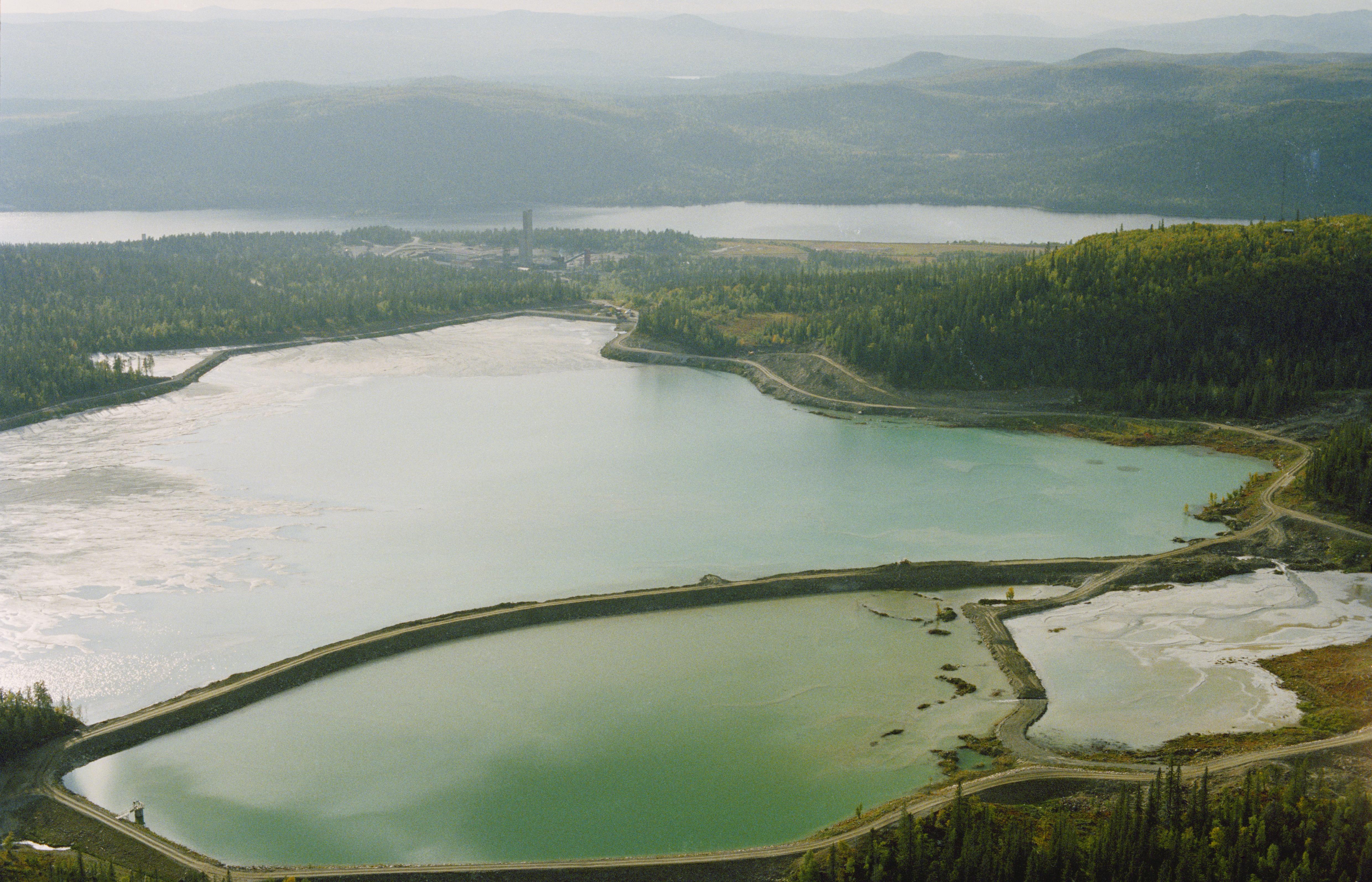 Beskrivning: Slamdammarna i blymalmsgruvan Laisvalls gruva (Laisvalls blygruva). gruvområdet är norr om tätorten Laisvall (Lájsogädde) vid Laisälven (Lájsso). Bilden är tagen mot (väderstreck): V