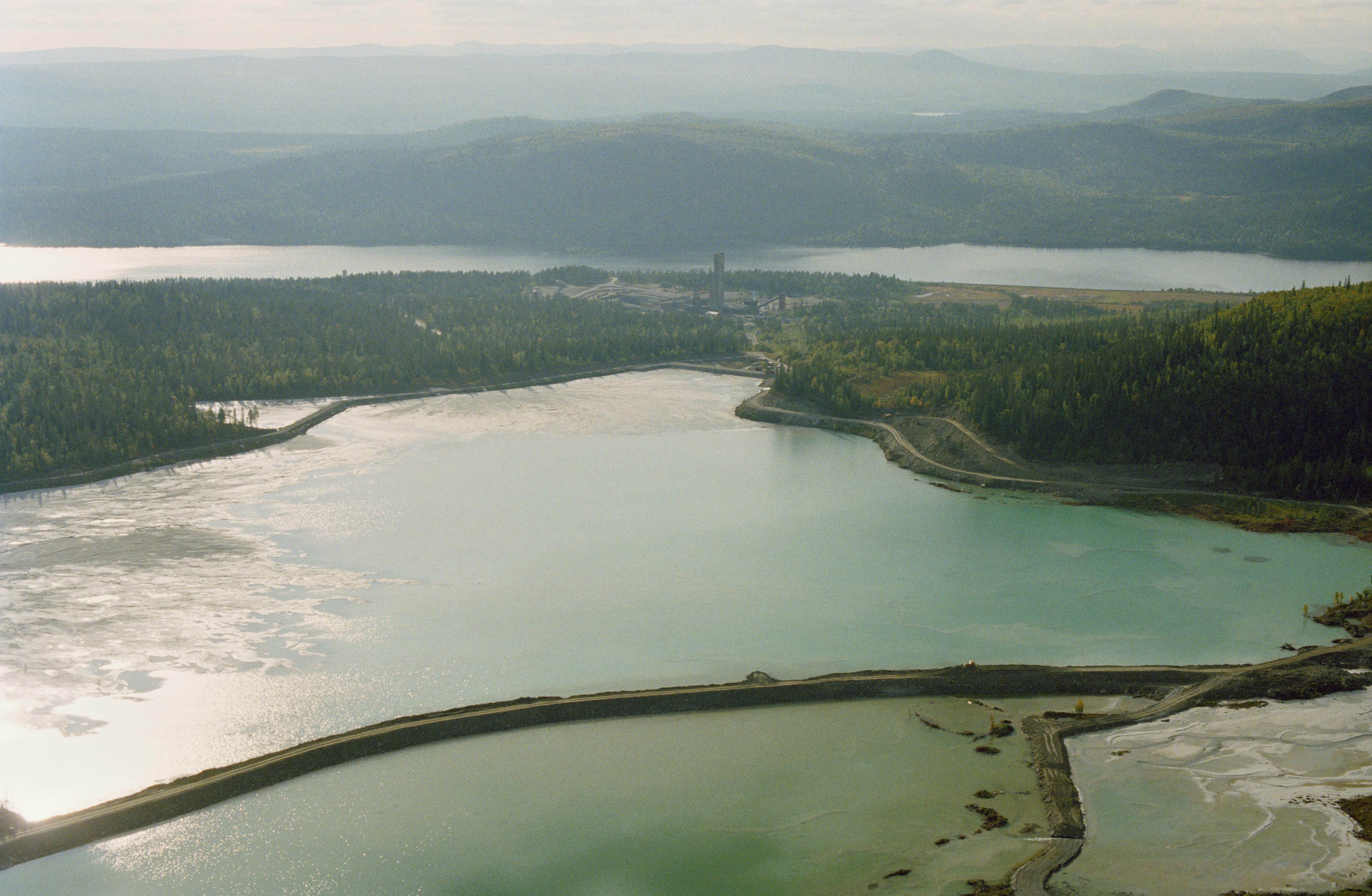 Beskrivning: Slamdammarna i blymalmsgruvan Laisvalls gruva (Laisvalls blygruva). gruvområdet är norr om tätorten Laisvall (Lájsogädde) vid Laisälven (Lájsso). Bilden är tagen mot (väderstreck): V