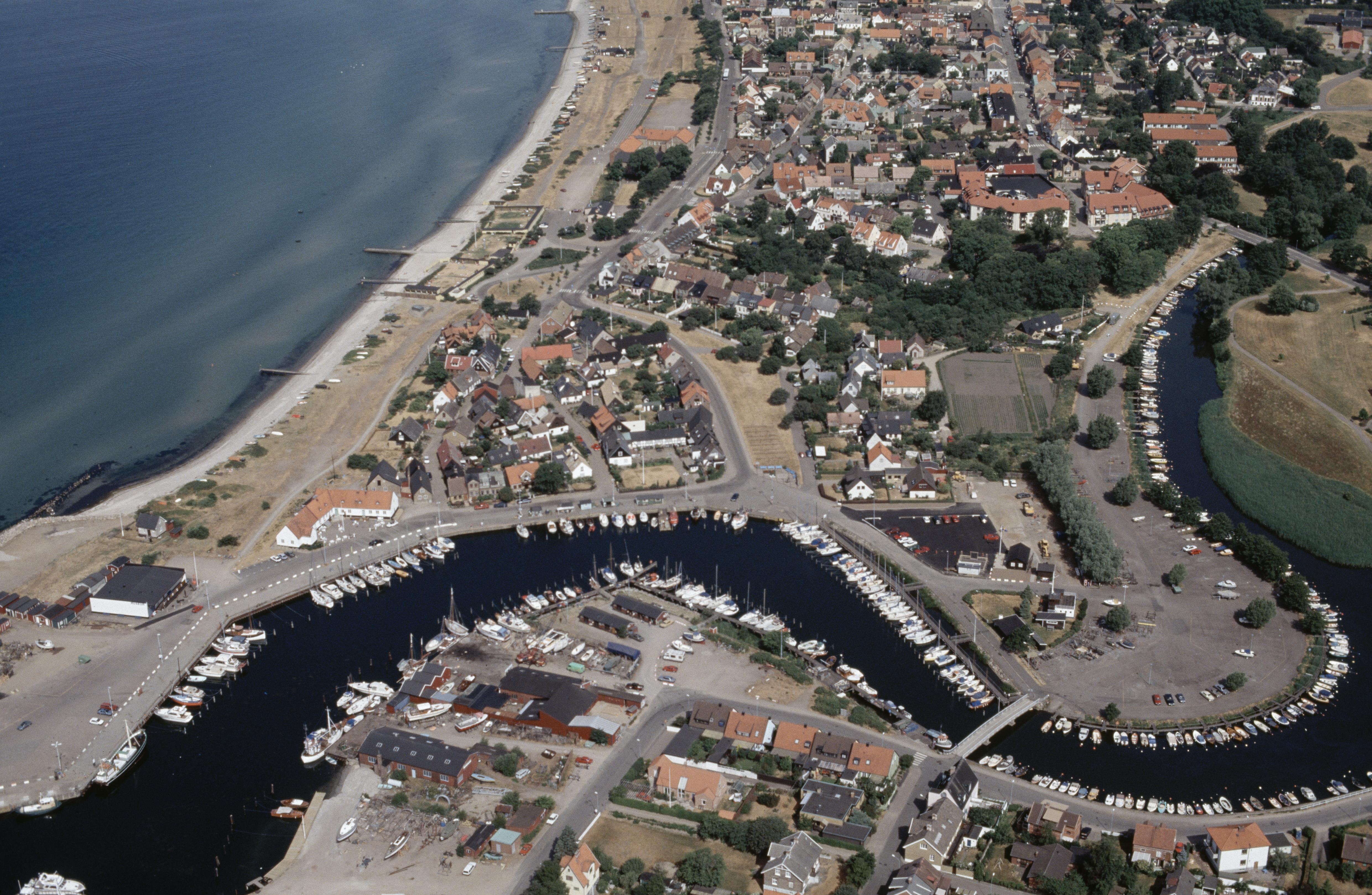 Beskrivning: (Tidigare Raus socken). Råå hamn med Råå-åns utflöde i Öresund. Bilden är tagen mot (väderstreck): NV