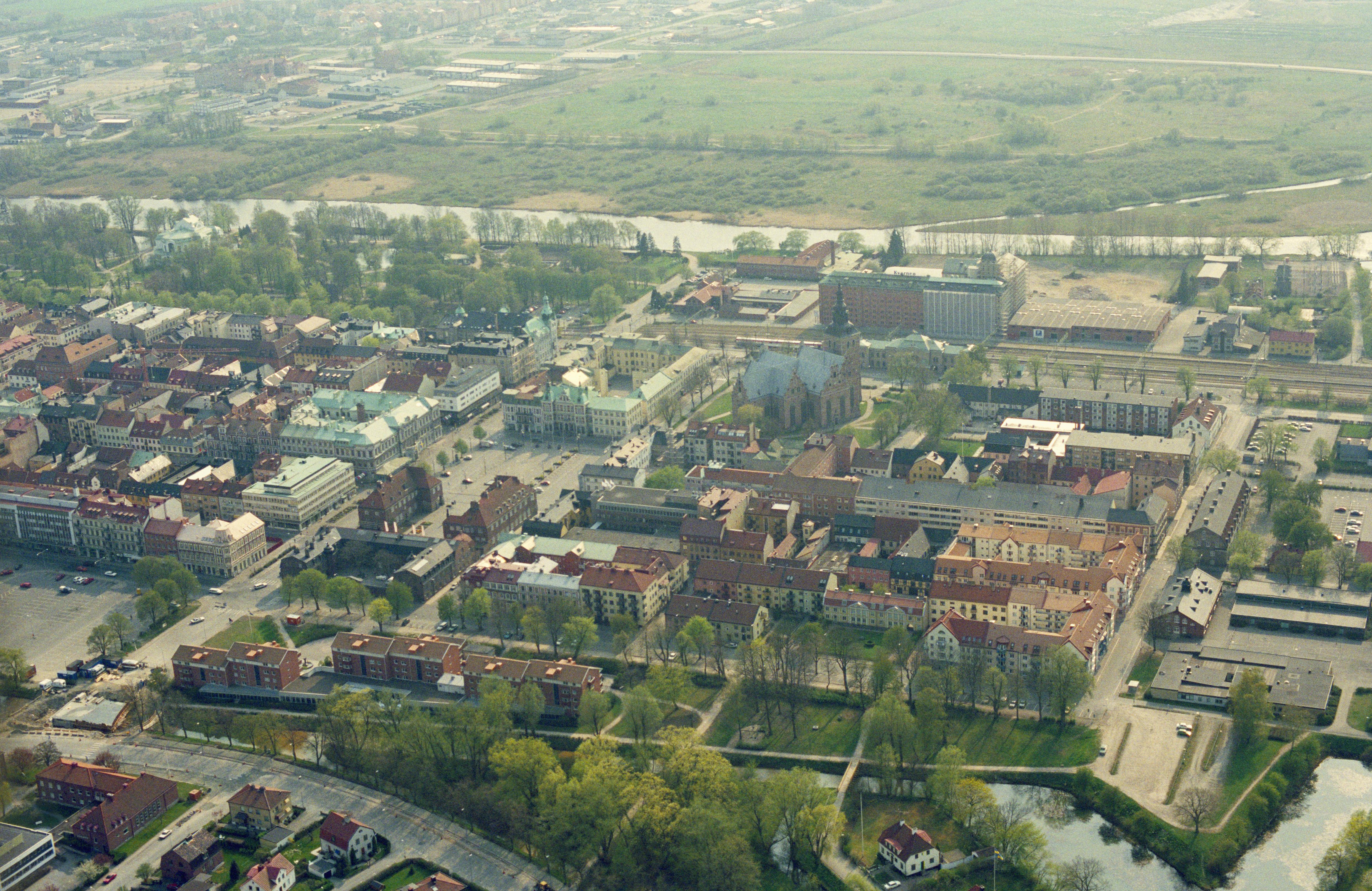 Beskrivning: Anmärkning (övrig): Riksintresse-nr/namn: L15 - Kristianstad. Socken: Kristianstad. Motivering: Fästningsstad och residensstad med rutnätsplan och arkitektur präglad av militär och förvaltning. Ett av de främsta exemplen på den danske kungen Christian IV:s stadsbyggnadskonst, anlagd som gränsfästning mot Sverige. - Uttryck för riksintresset: Stadsplan som genom sin långsträckta, rektangulära form är unik bland landets befästningsstäder. Trefaldighetskyrkan från Christian IV:s tid, bevarade befästningsanläggningar och militära byggnader. Institutionsbyggnader och annan bebyggelse som hör samman med funktionen som residensstad. Äldre småskalig bebyggelse och mer storstadsmässig bebyggelse från 1800-talets slut v(…) Texten i detta fält har förkortats vid migrering till e-arkivet. Se filbilagan extra.xml för fullständig information under note_archivist. Beskrivning: Kristianstads stad. Befästningsanläggning RAÄnr Kristianstad 110:1. Heliga Trefaldighetskyrka vid bildens mitt. Bilden är tagen mot (väderstreck): SV Fotosyfte: Flygbildsdokumentation