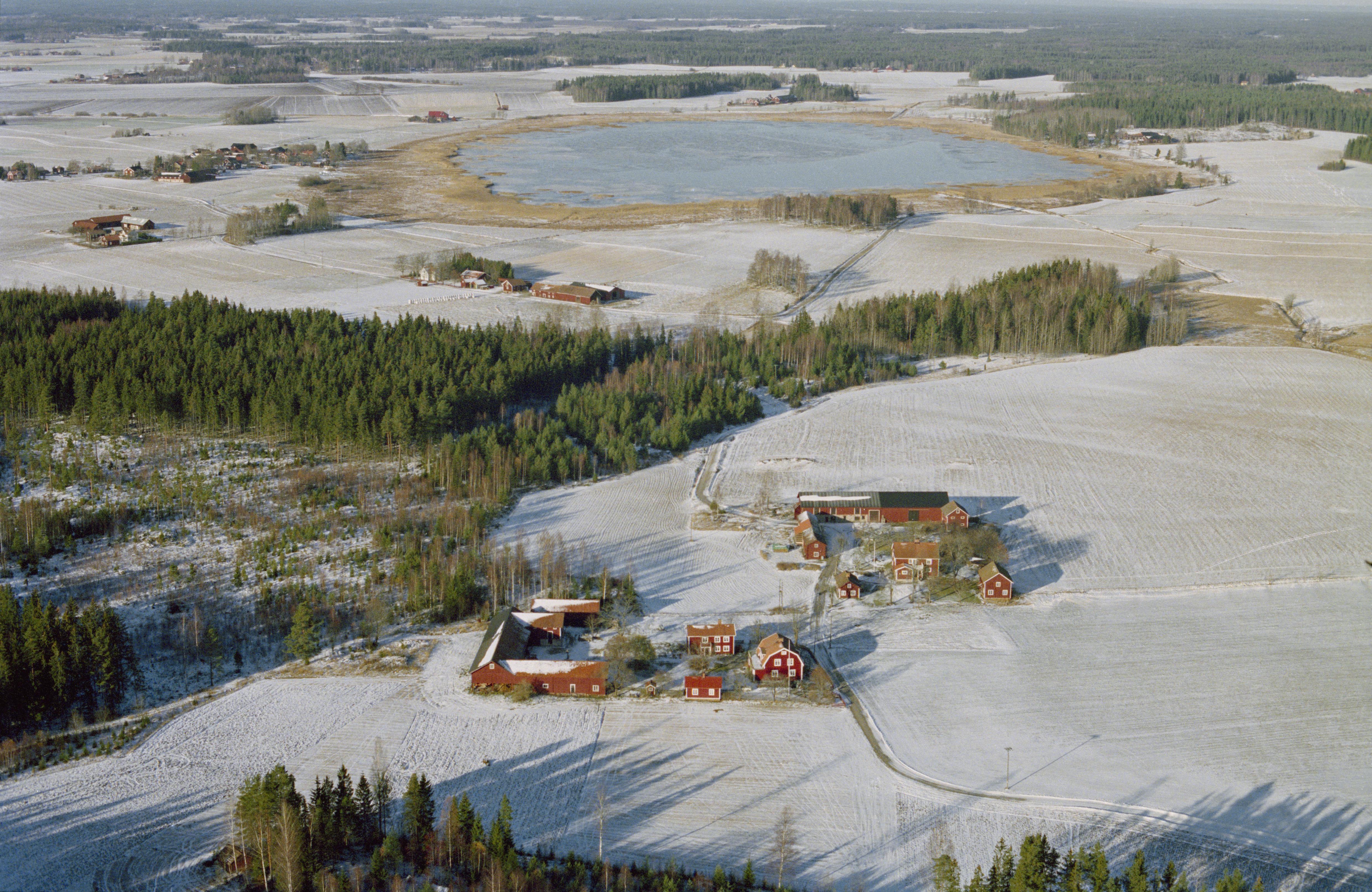Beskrivning: Gussjö by. Över bildens mitt fornlämningsområde med runristning RAÄnr Fläckebo 2:1, hällristning Fläckebo 218, husgrund Fläckebo 46:1 m.fl. söder om Gussjön. Bilden är tagen mot (väderstreck): NNV